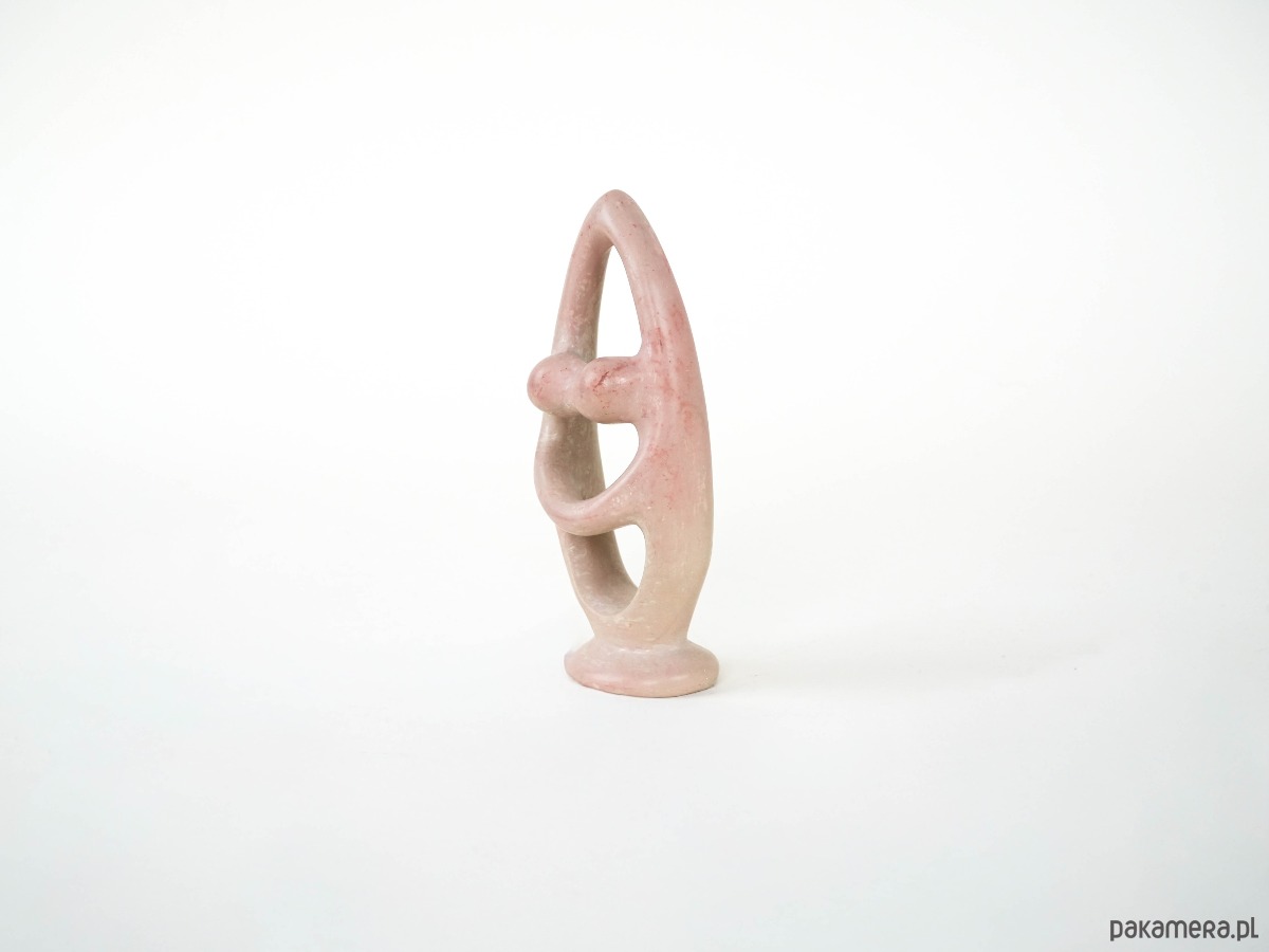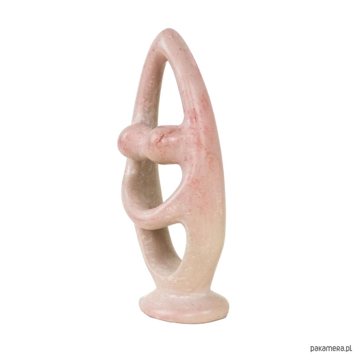 Rzeźba wykonana z jasnego kamienia, utrzymana w stylu abstrakcyjnym. Forma przypomina dwie głowy splecione w geście bliskości, jakby trzymały się za ręce. To symboliczny motyw więzi i jedności, podkreślony przez miękką linię i organiczny charakter materiału.