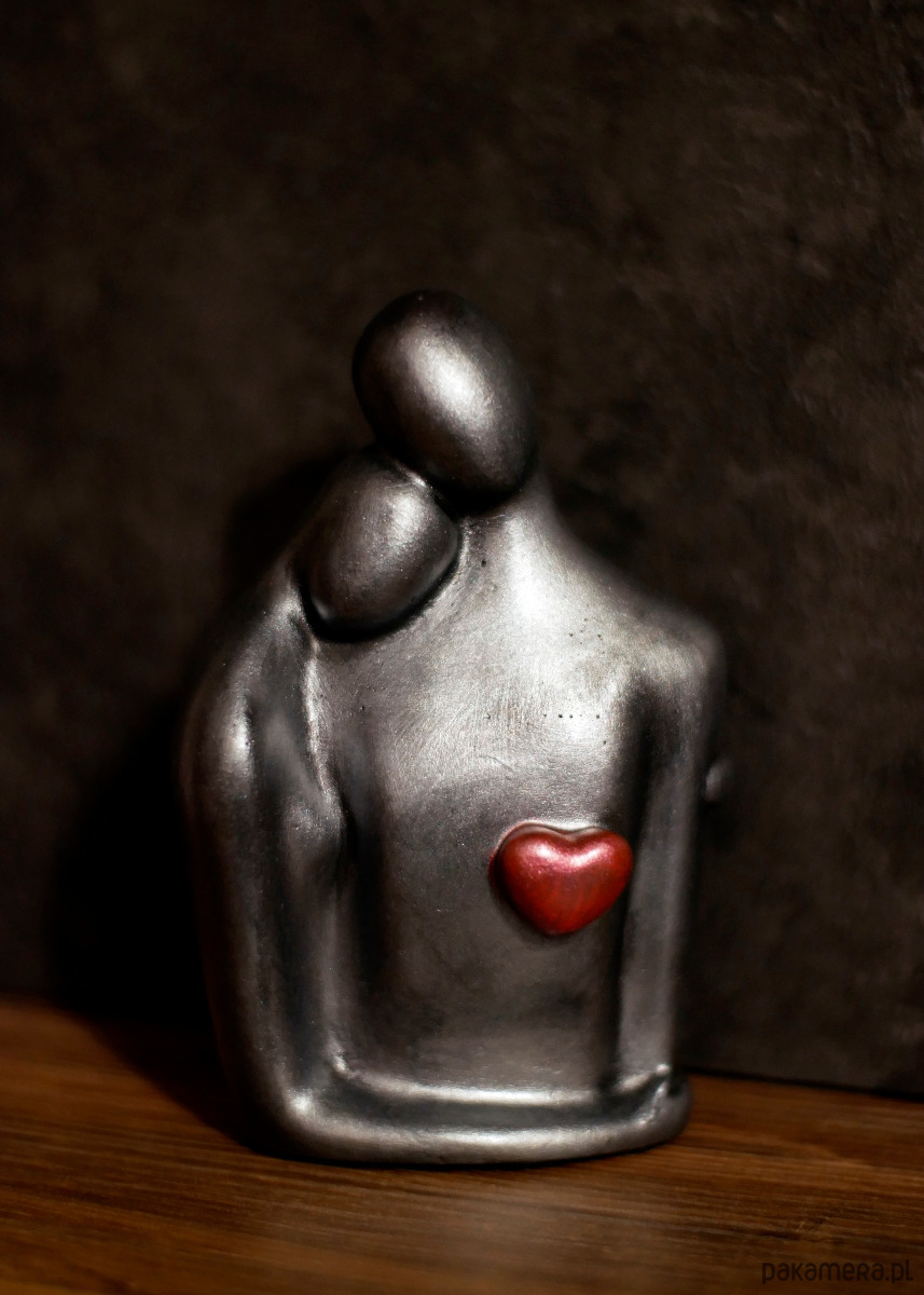 Rzeźba z gipsu, Jesteś Moim Skarbem, srebrno-czerwona, wys. 12,5 cm