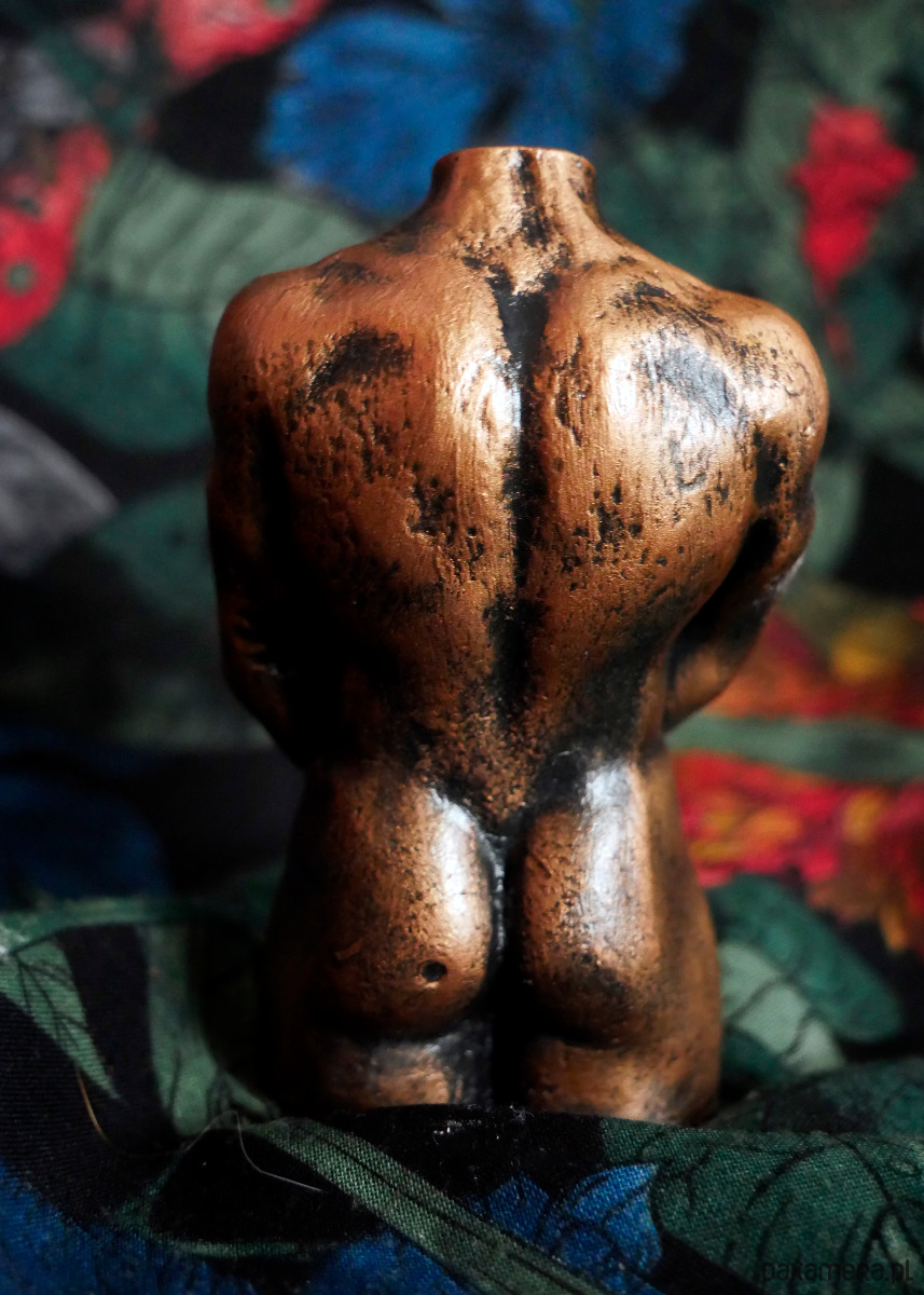 Należy pamiętać, że kolor rzeźby zmienia się w zależności od światła, to efekt zastosowania metalicznego wosku.