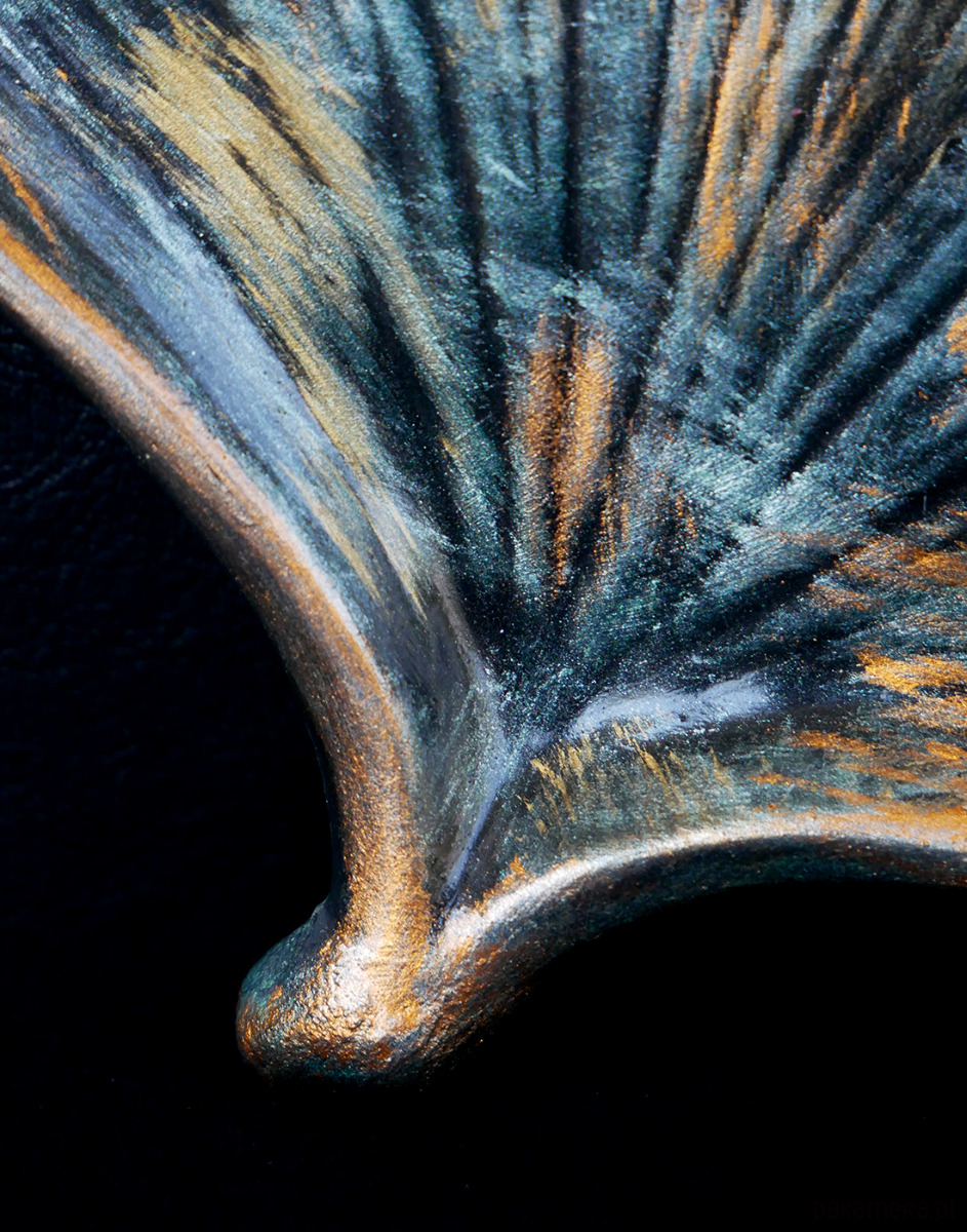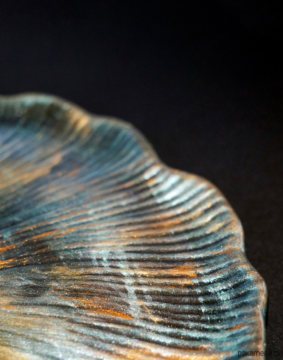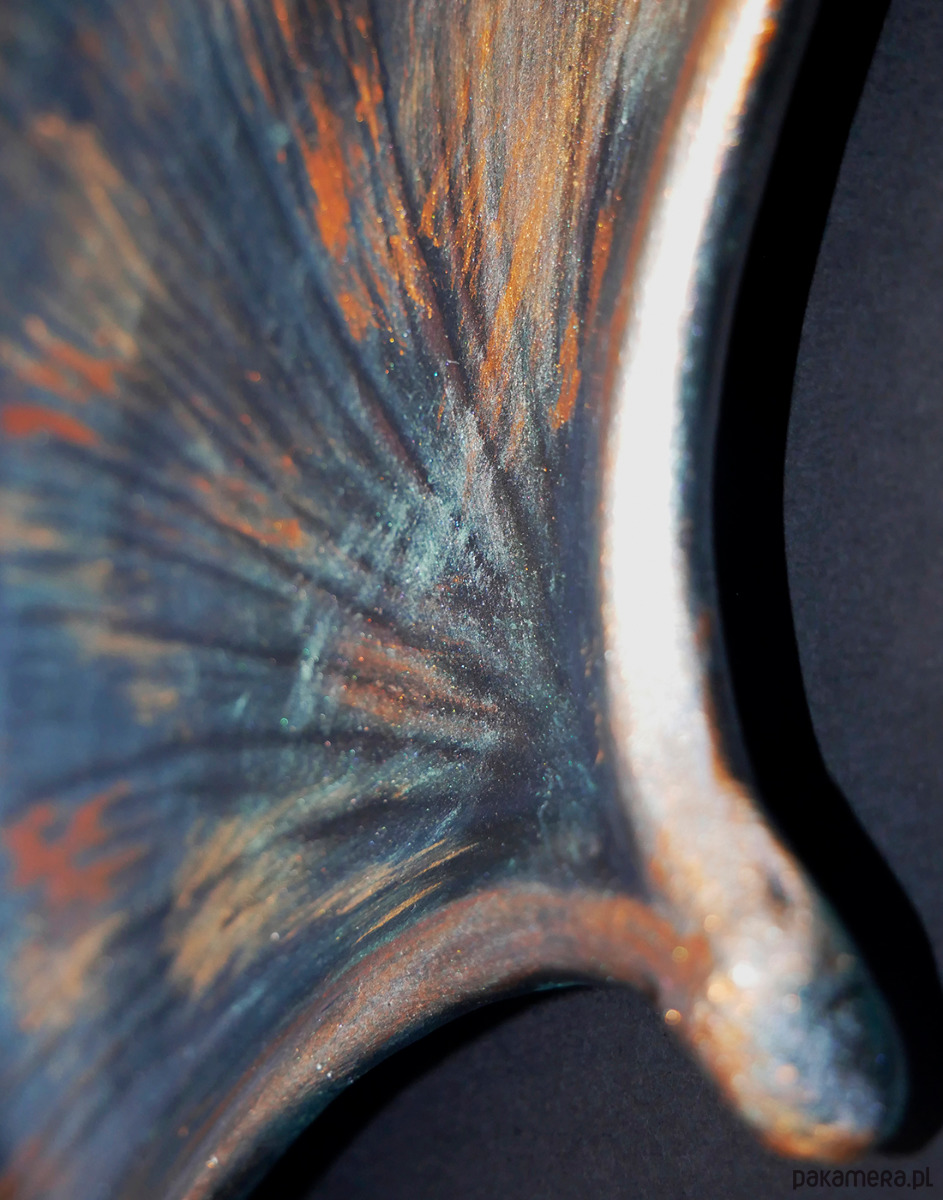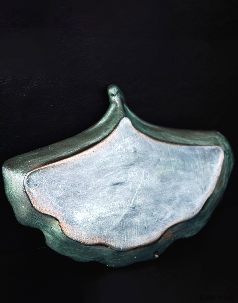 Należy pamiętać, że kolor rzeźby zmienia się w zależności od światła, to efekt zastosowania metalicznego wosku.
