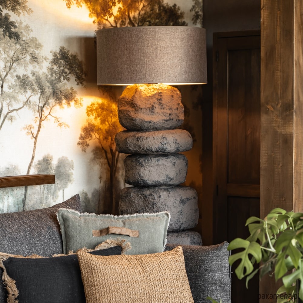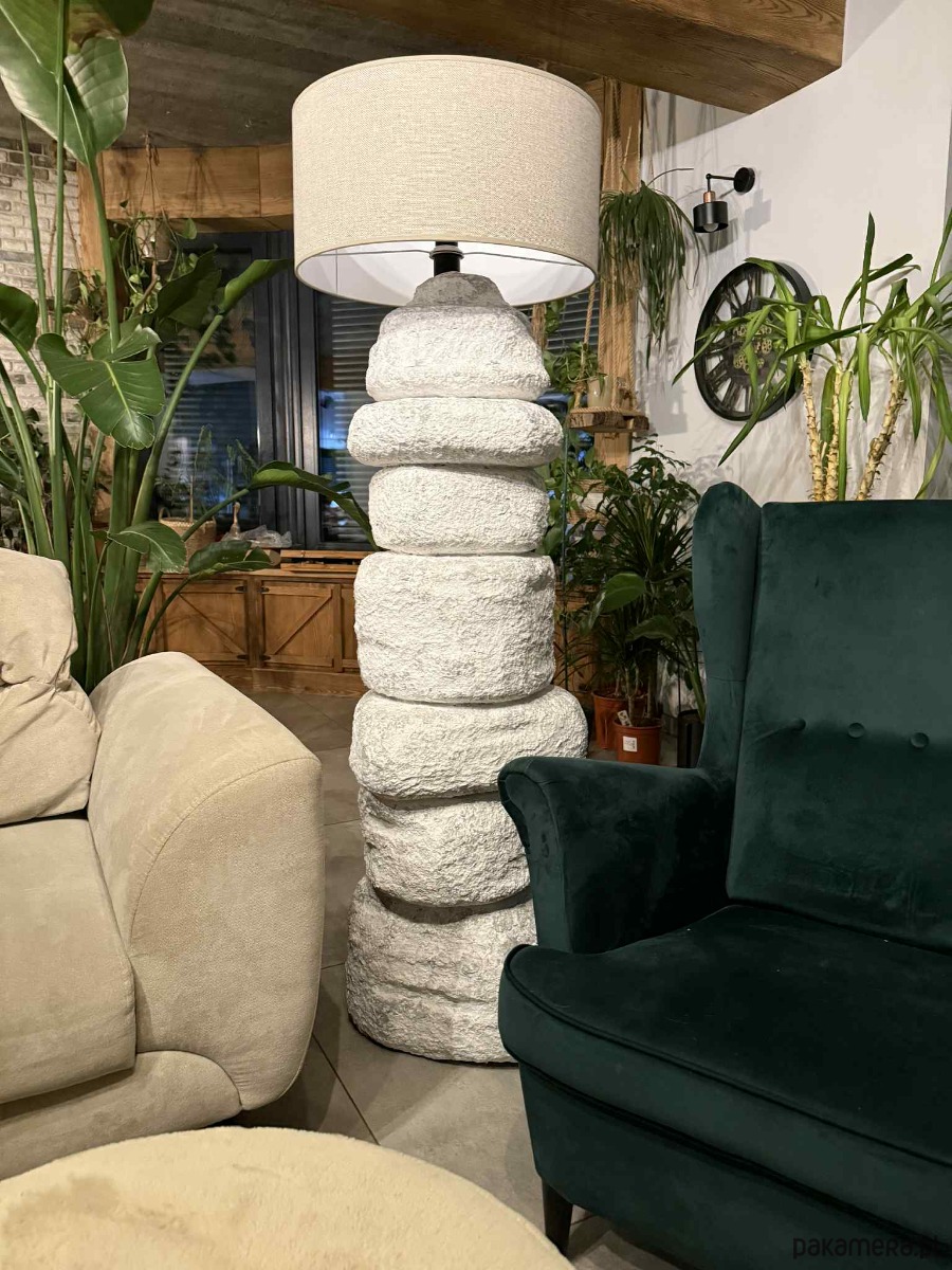 Rzeźbiarska lampa stojąca inspirowana naturą kamienia