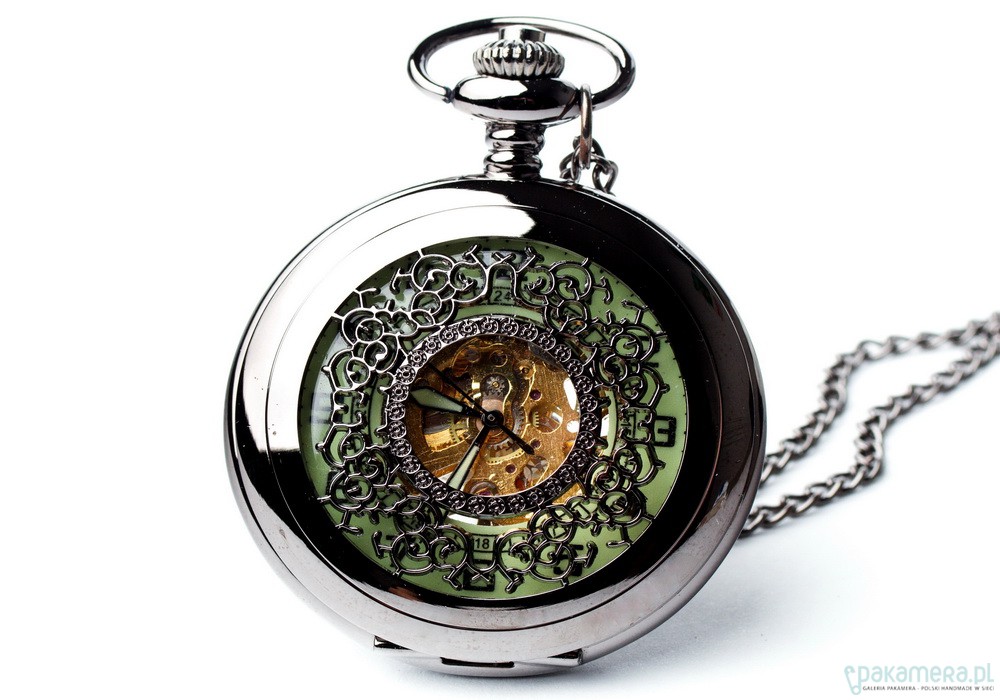 Specjalnie dla Naszych Klientów pozwoliliśmy sobie wprowadzić czarną odmianę zegarka Rzeźbiony Brąz. Wyrazisty a zarazem delikatny styl, stanowi cudną ozdobę do każdego stroju. Zegarek wykonany jest ze stali uszlachetnianej w kolorze czarnym. Cała przednia jego ścianka ozdobiona jest misternie rzeźbionymi ażurowymi wzorami przez który przebija urok tykającego wnętrza. Delikatnie prześwitujący kolor zielony nadaje tajemniczości zegarka, kolor ten wynika z tarczy fluorescencyjnej. Dzięki niej zegarek nabiera współczesnego charakteru i dodatkowo umożliwia odczytanie godziny gdy dookoła już ciemno. Tył zegarka, równie przepięknie rzeźbiony, pozwala na obserwację działania jego bijącego serca (zegarek dzięki temu można przejrzeć 'na wskroś').