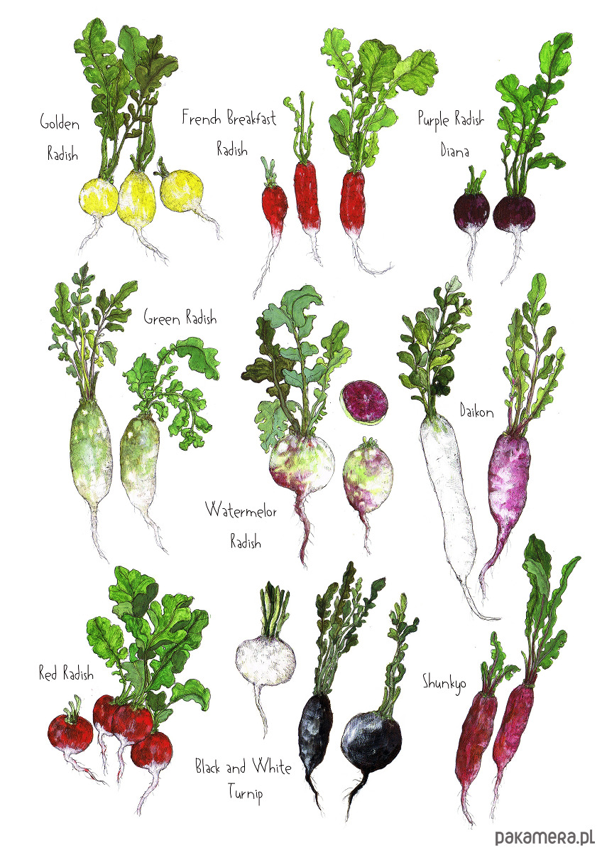 Plansza z wybranymi rodzajami rzodkiewek.