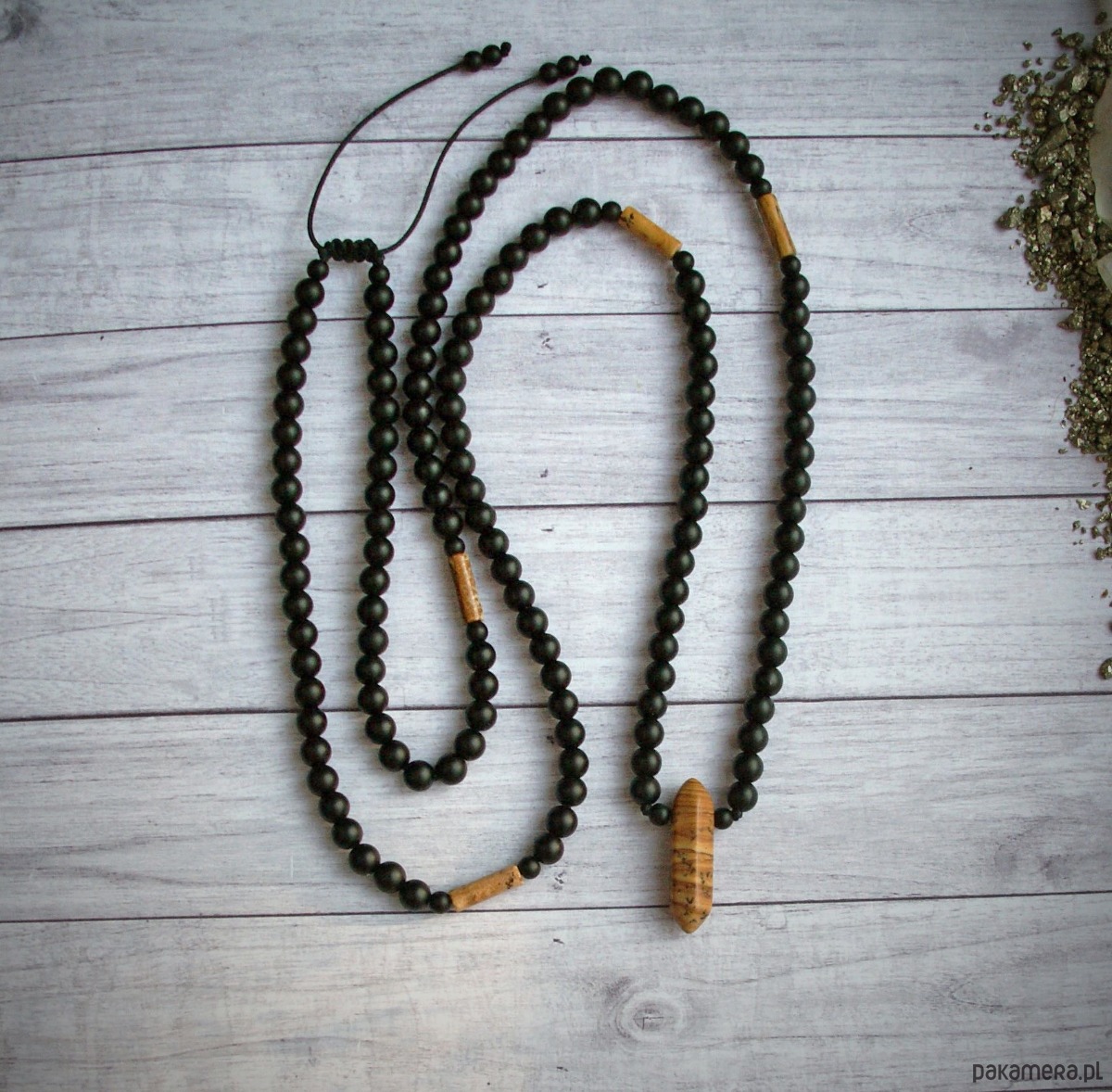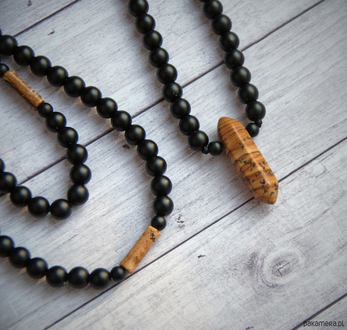 S A L E : Jaspis, onyks : długi naszyjnik męski