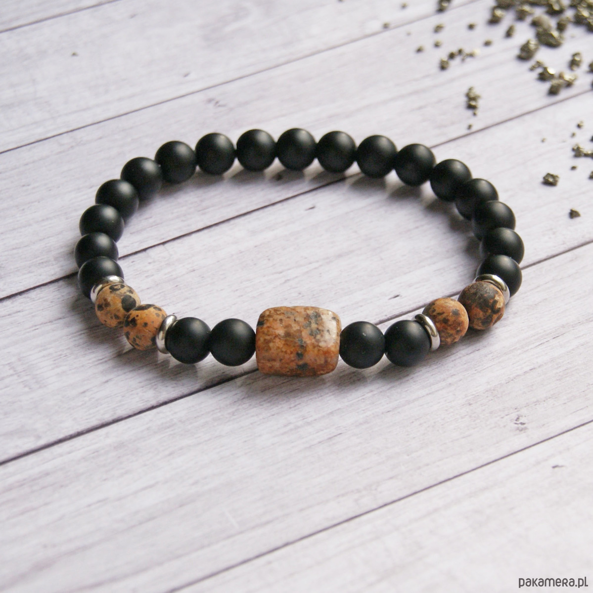 TUTAJ: ciekawa bransoletka wykonana z kul MATOWEGO jaspisu leopardziego oraz bryłki jaspisu, matowego onyksu (8mm); dodatkowo 4 pierścienie ze STALI SZLACHETNEJ (nie uczula, kolor nie ściera się) ...