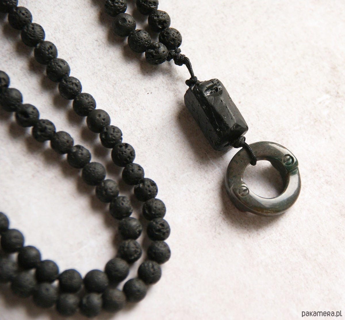 S A L E : UNIKAT: agat, turmalin, lawa - naszyjnik