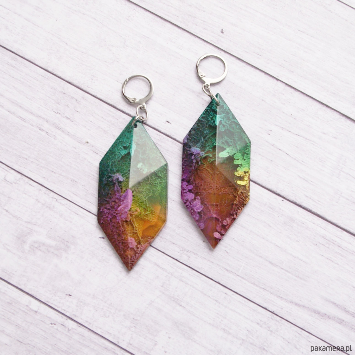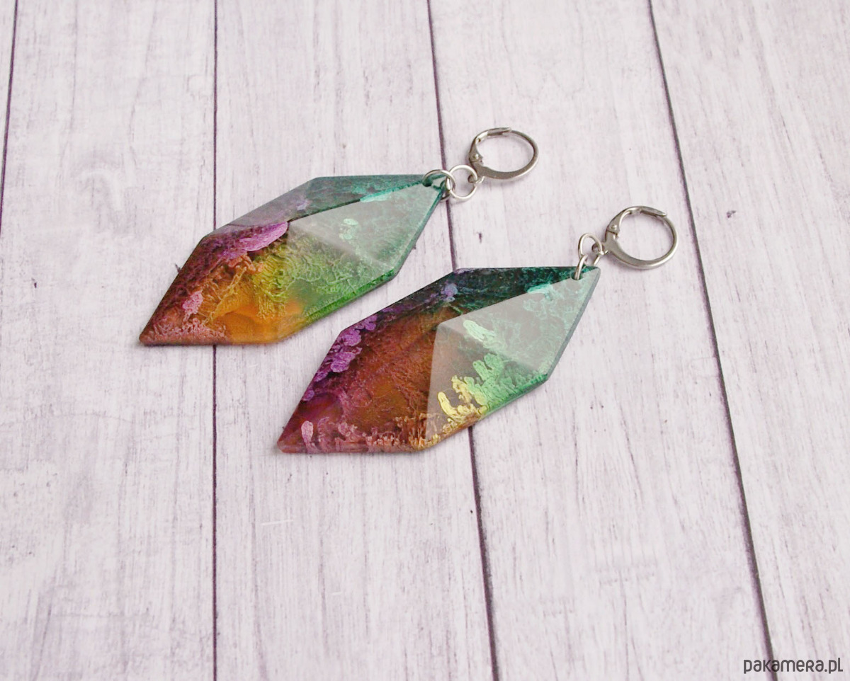 KOLCZYKI WYKONANE Z ŻYWICY. niezwykle soczyste kolory i niesamowite efekty wewnątrz osiągnęłam dzięki użyciu profesjonalnych tuszy alkoholowych najwyższej jakości (spójrz na zbliżenia!)