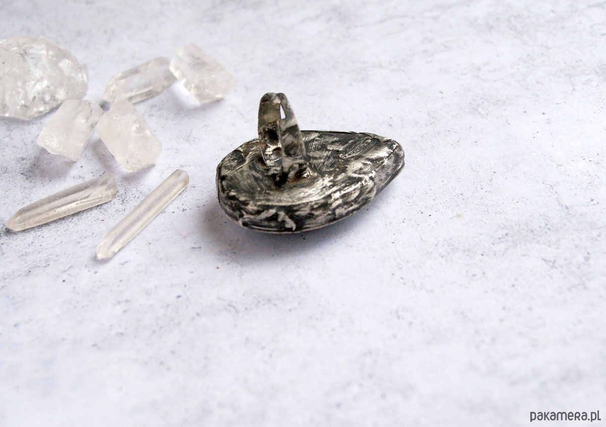 PIERŚCIEŃ wykonany jest z dużego, ceramicznego kaboszonu pokrytego bajecznym szkliwem.