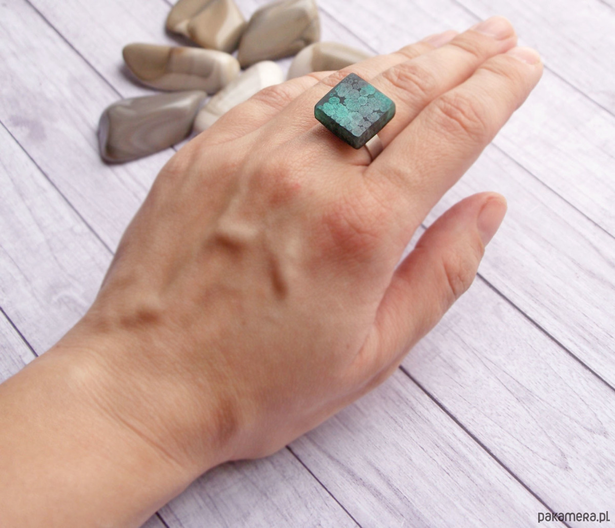 S A L E :UNIKATOWY pierścień z żywicy INKY COLORS