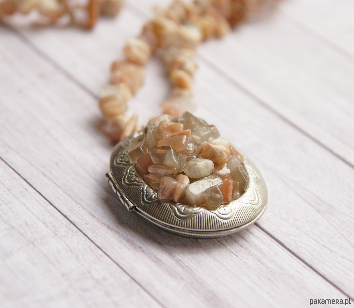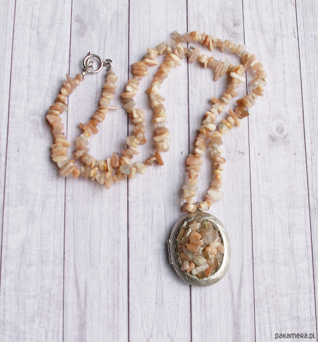 sekretnik zawiesiłam na sznurze grubej, nieregularnej sieczki KAMIENIA SŁONECZNEGO.