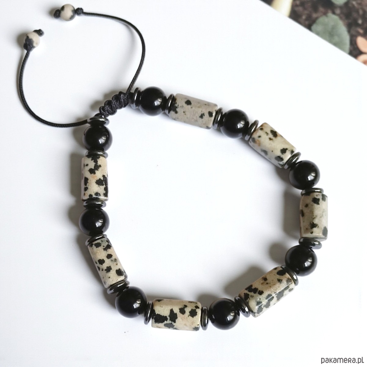 S-L : jaspis dalmatyński, onyks - ochronna, antystresowa bransoletka