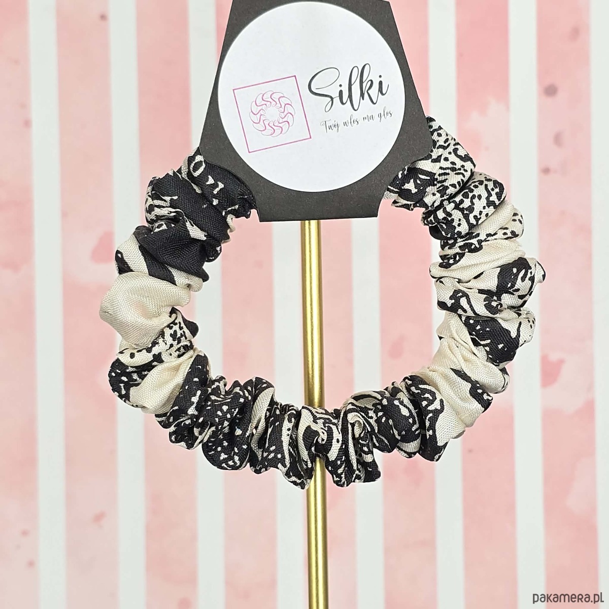 S wąska gumka jedwabna do włosów jedwab naturalny scrunchie biała czarna