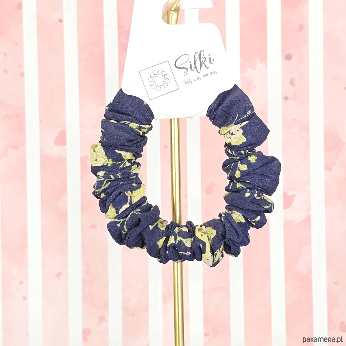 S wąska gumka jedwabna do włosów jedwab naturalny scrunchie granatowa