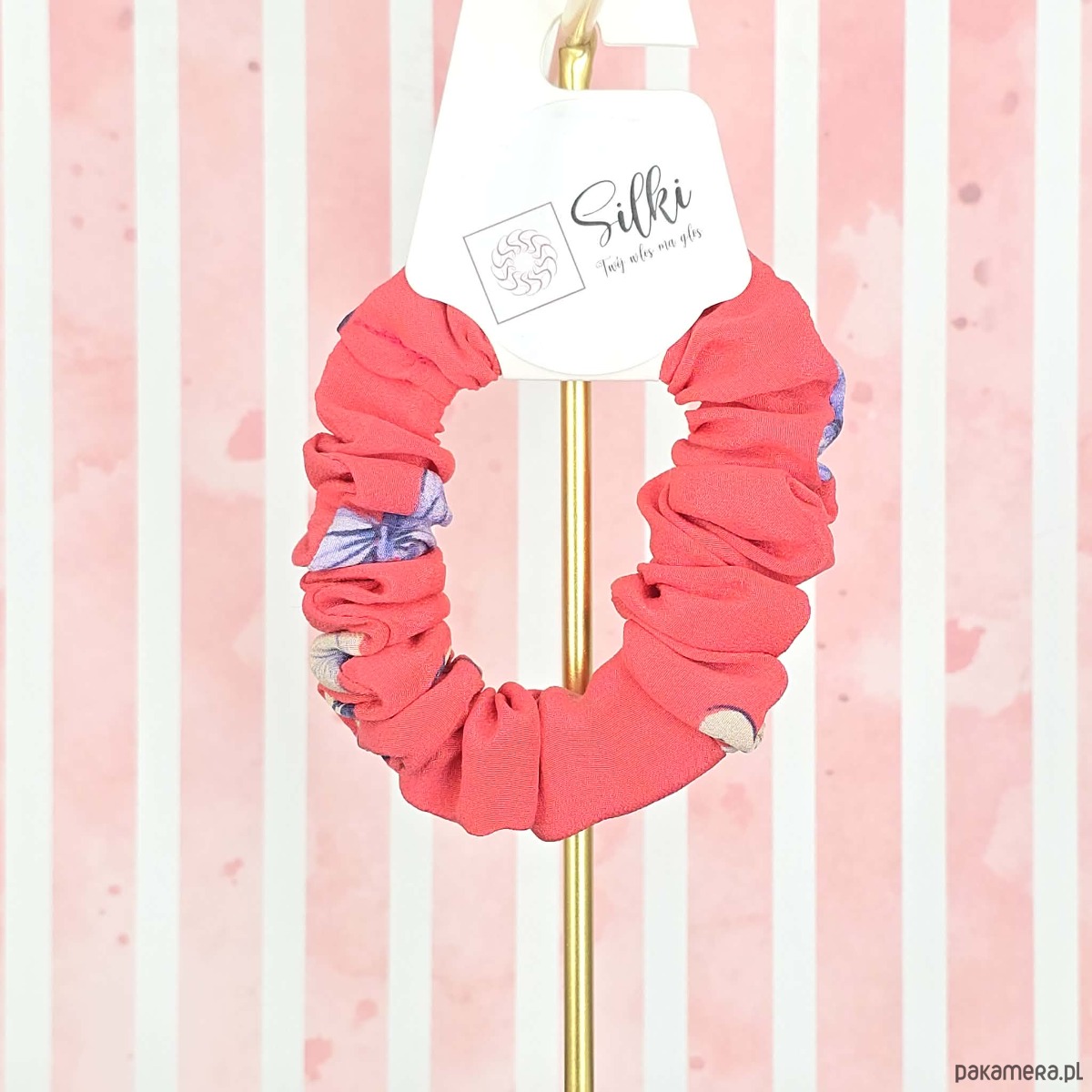 S wąska gumka jedwabna do włosów jedwab naturalny scrunchie koralowa