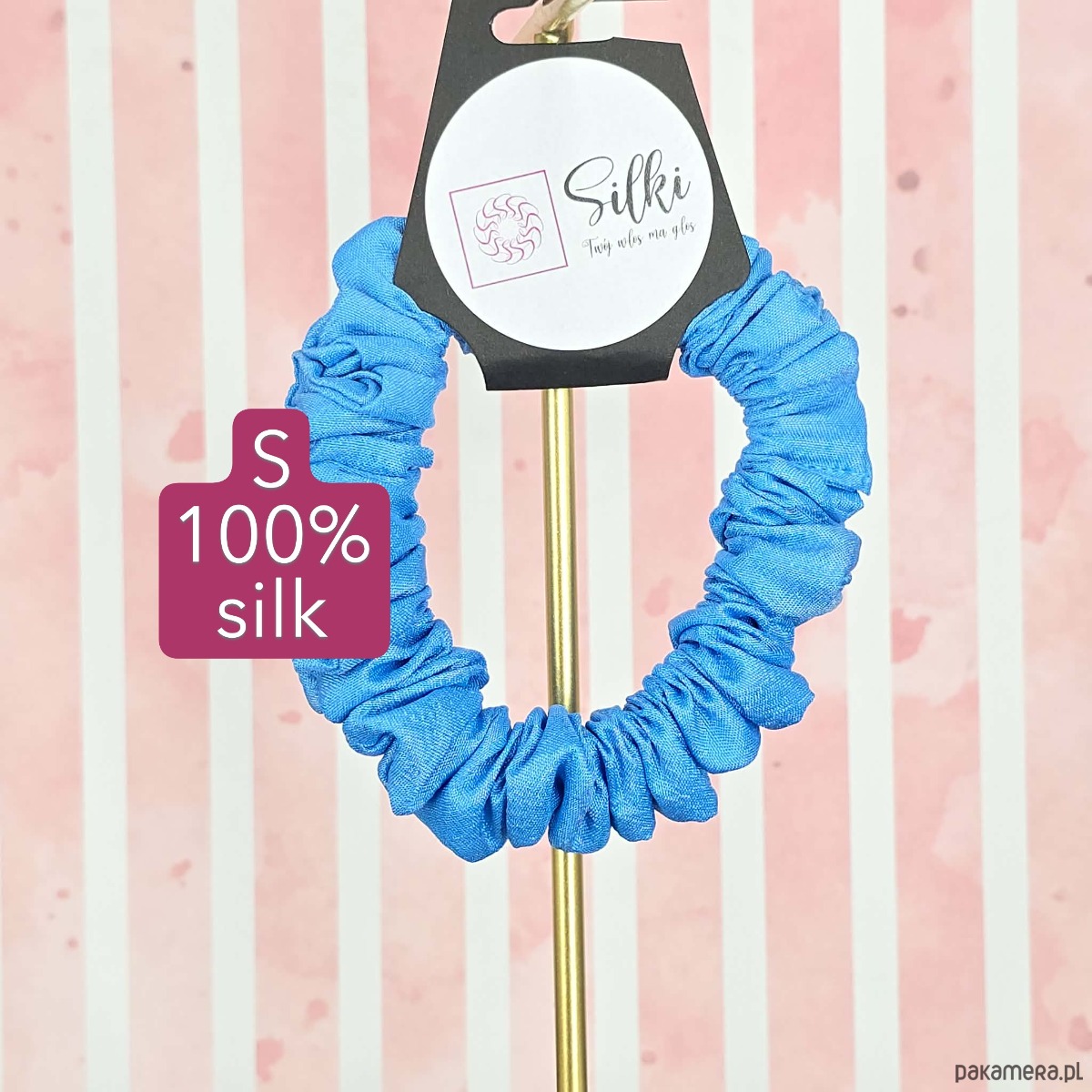 S wąska gumka jedwabna do włosów jedwab naturalny scrunchie niebieska