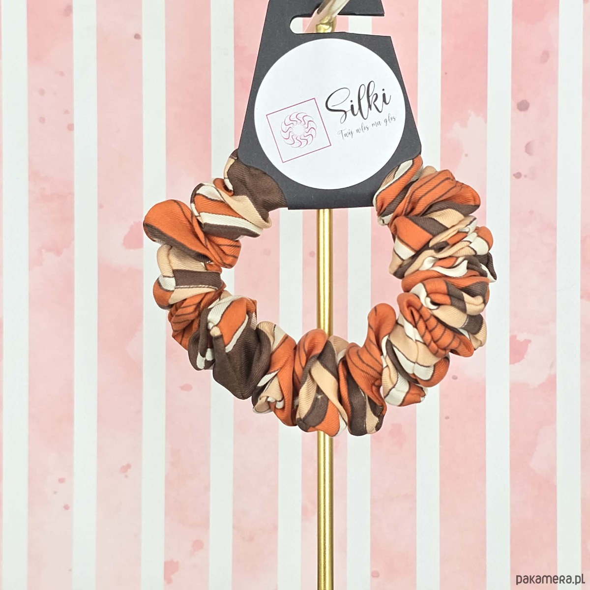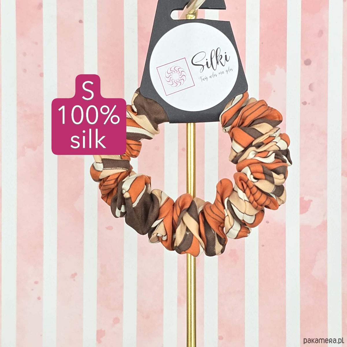 S wąska gumka jedwabna do włosów jedwab naturalny scrunchie pomarańczowa