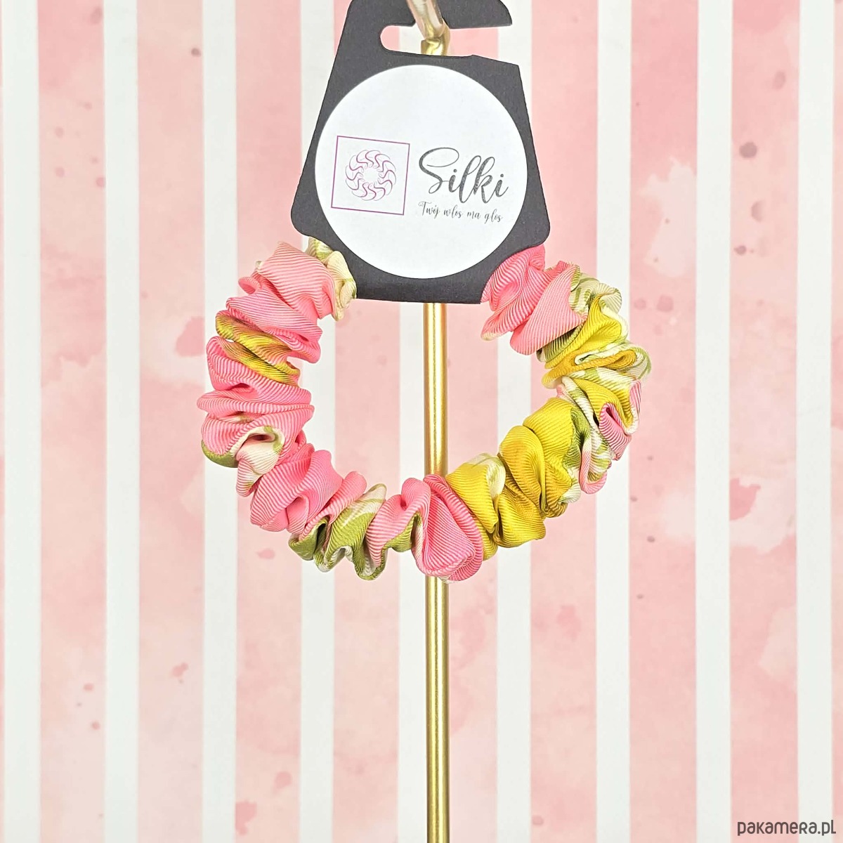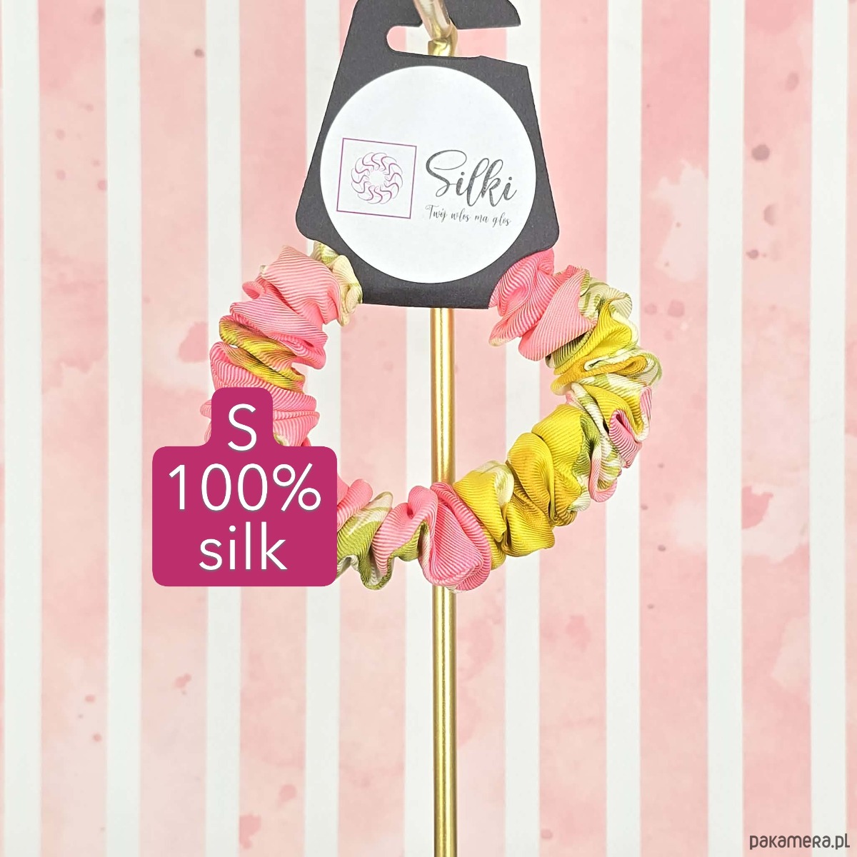 S wąska gumka jedwabna do włosów jedwab naturalny scrunchie różowa kolorowa