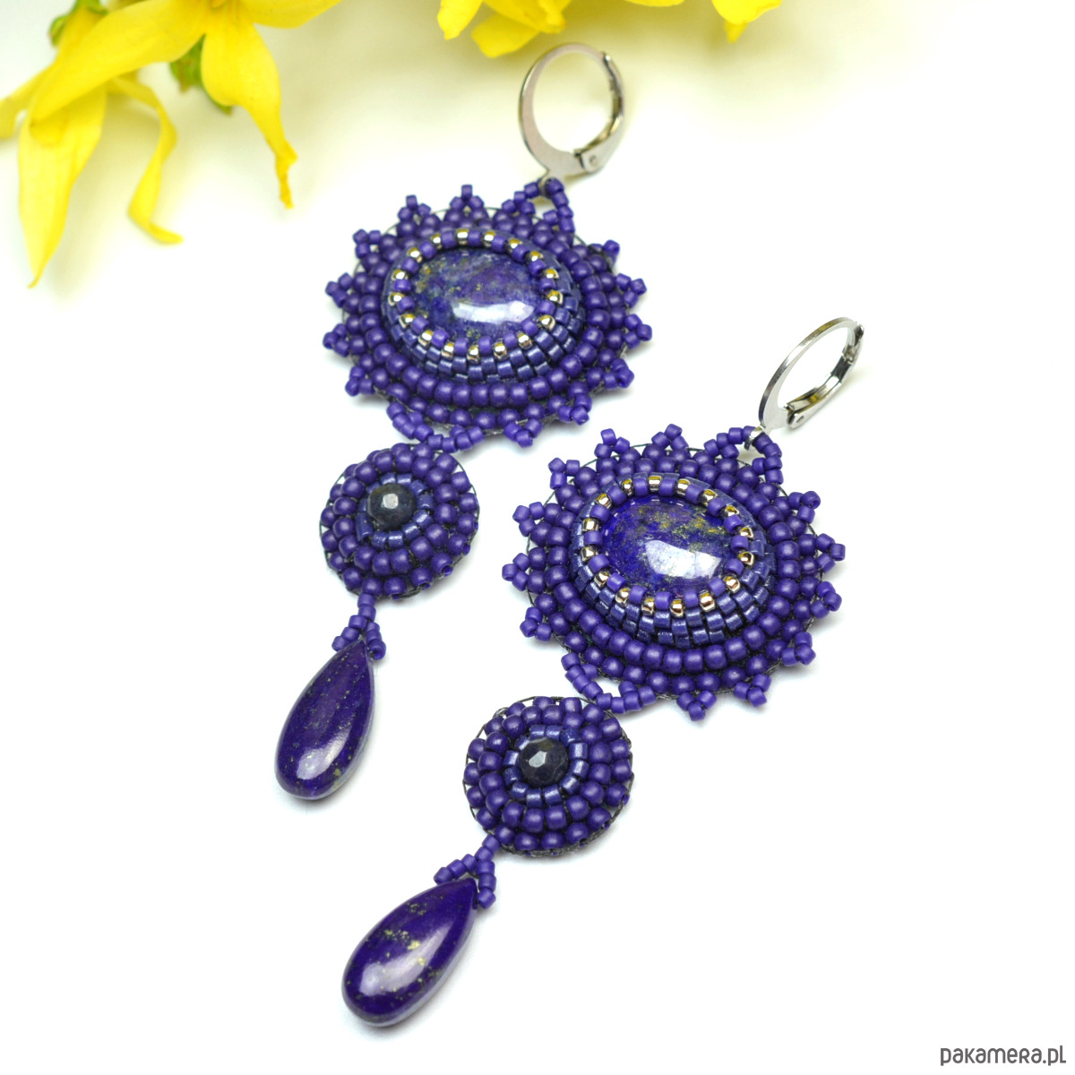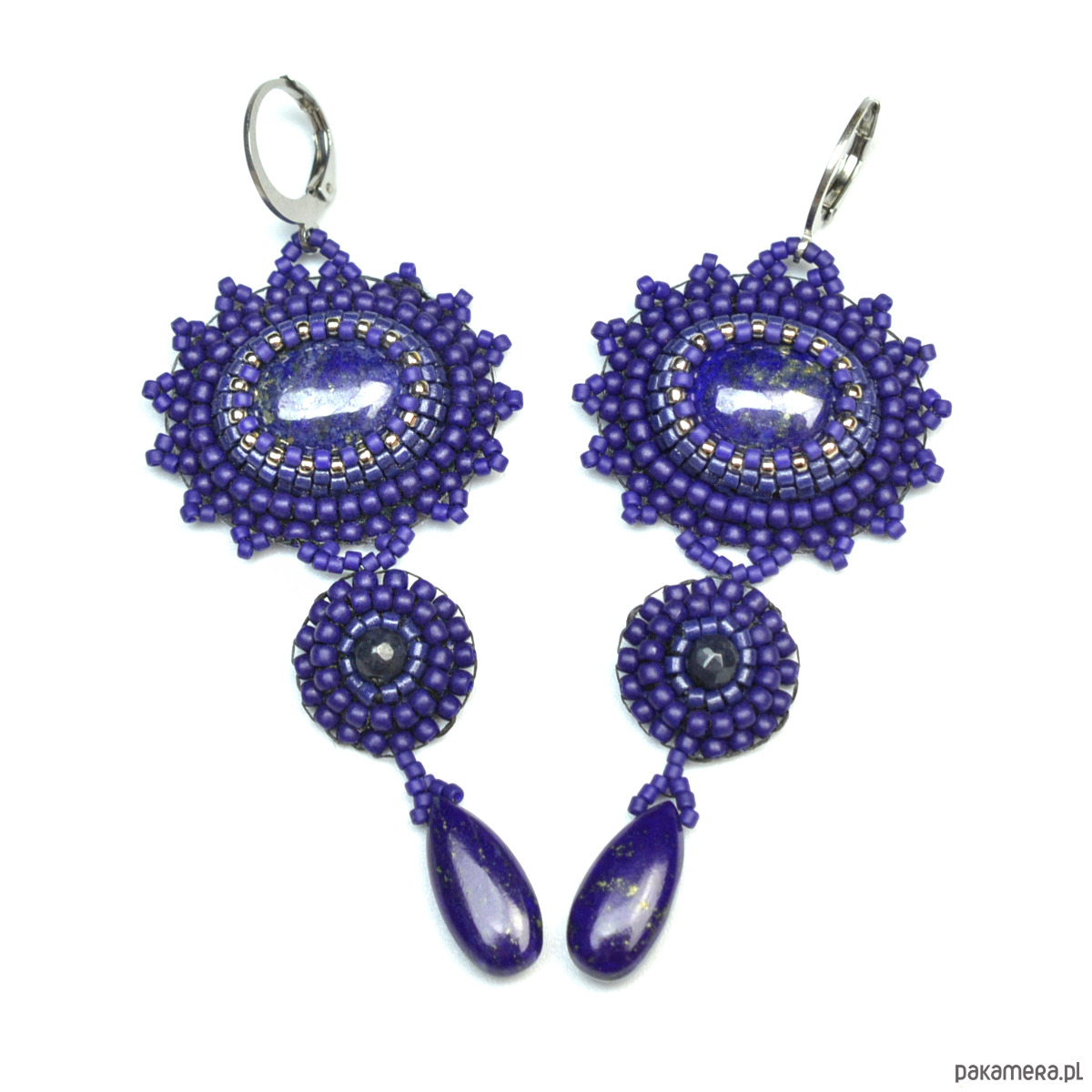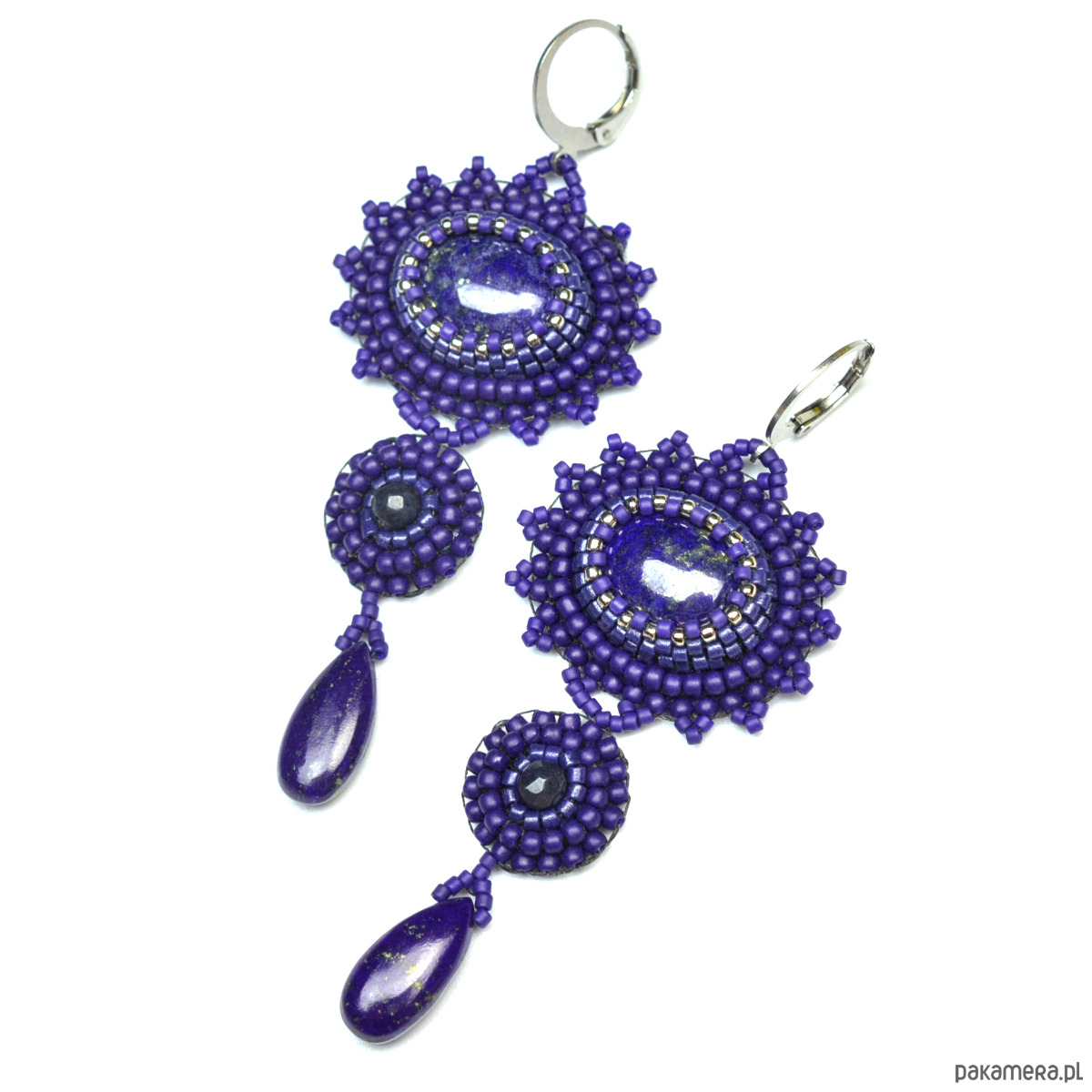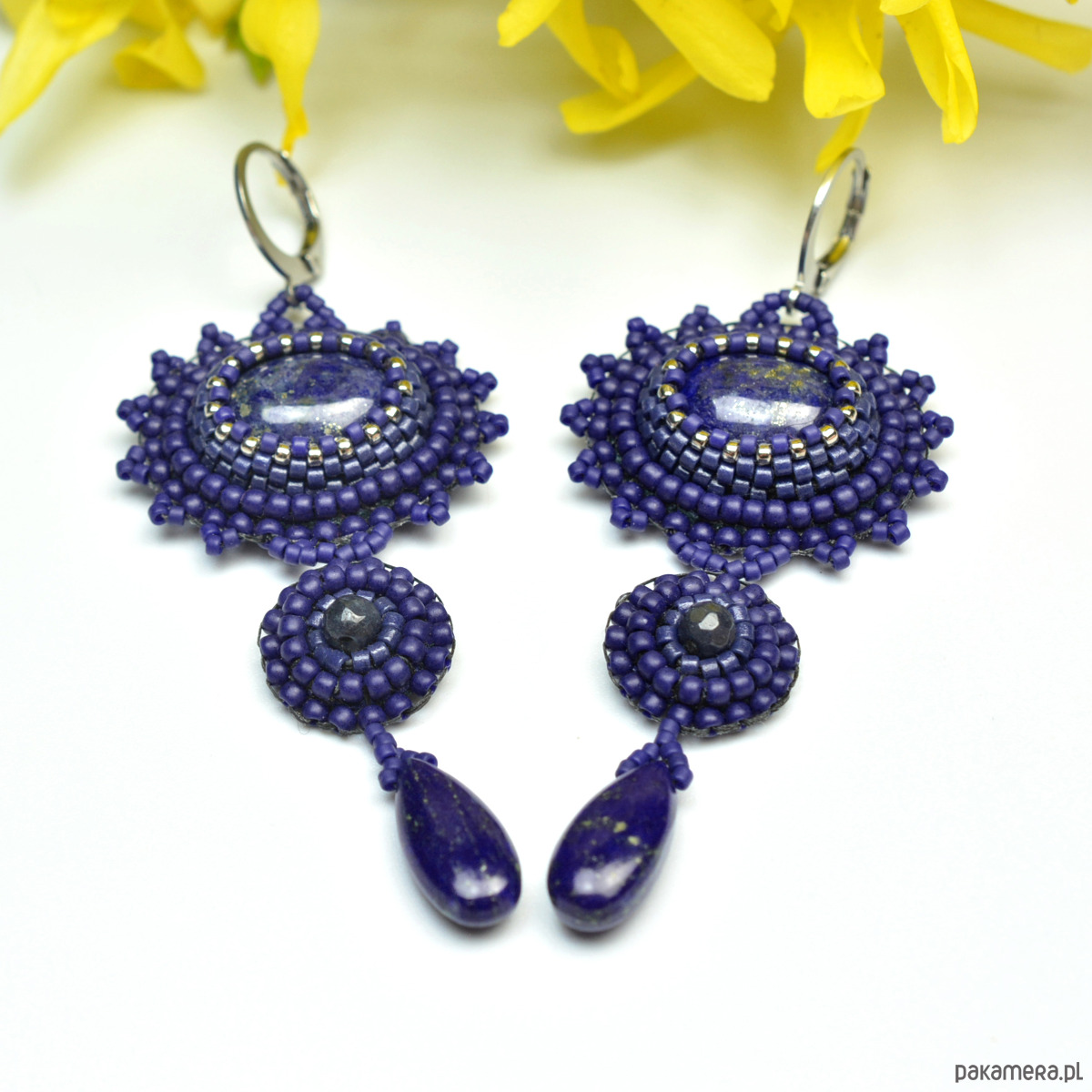 Safaia, kolczyki z lapis lazuli, haft koralikowy