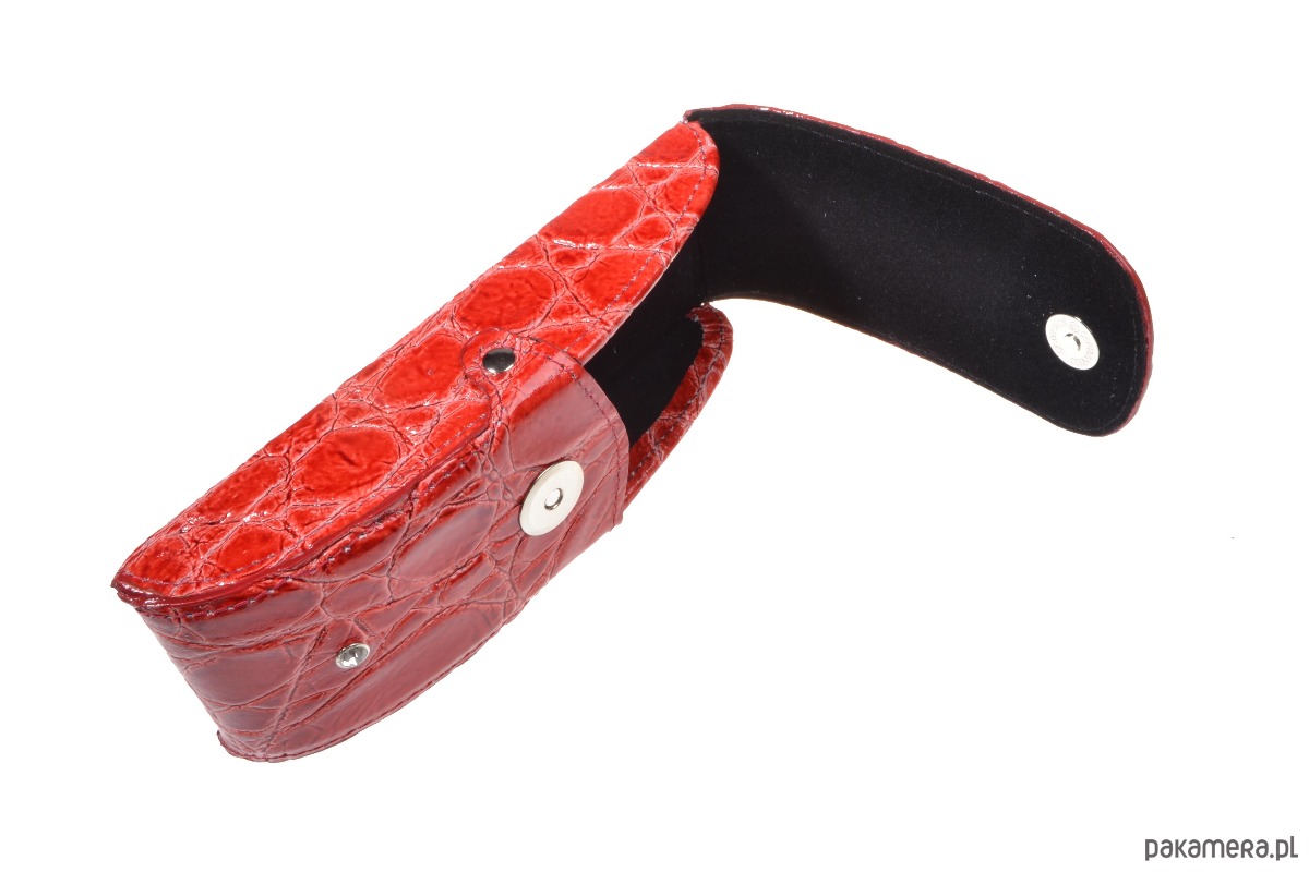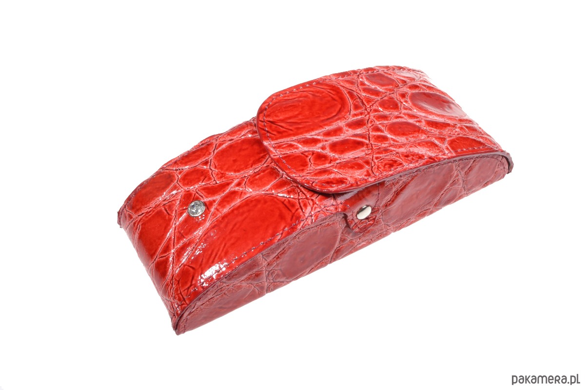 - kolor czerwony, skóra lakierowana, skóra tłoczona