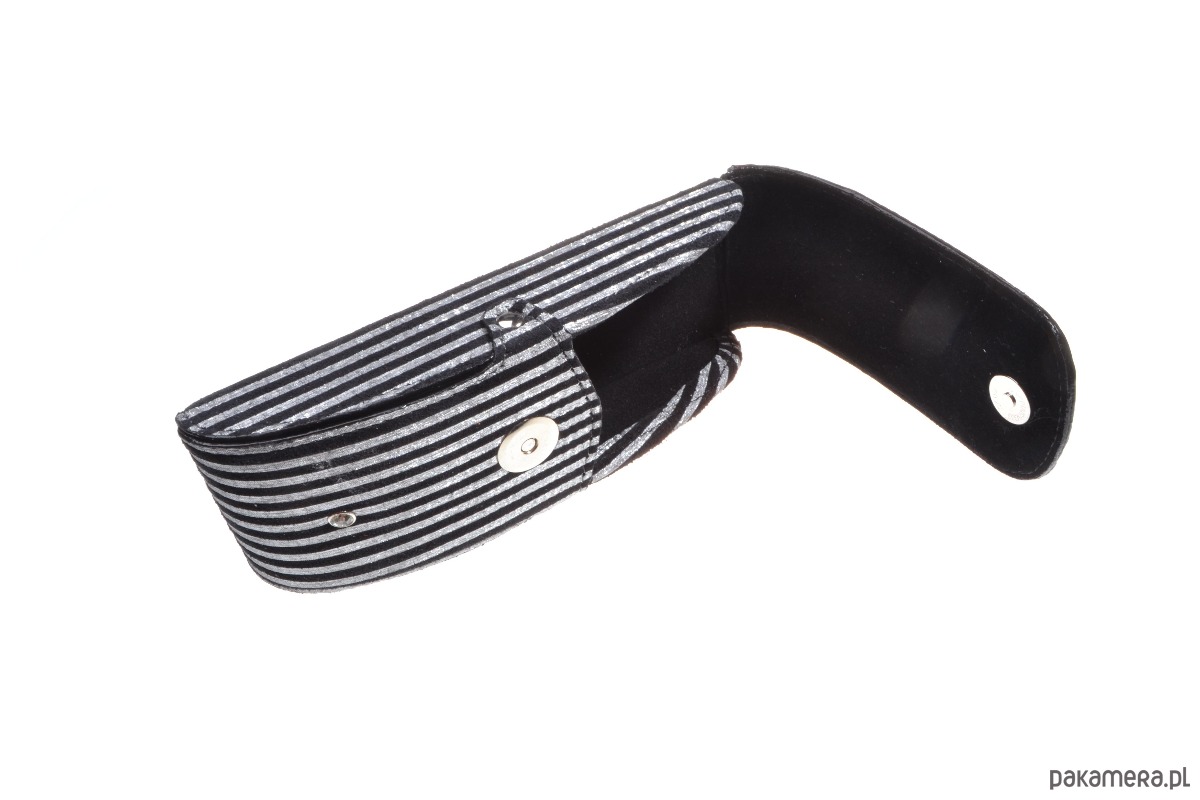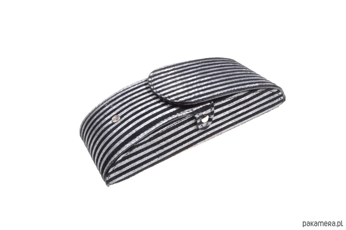 - motyw czarno- białych pasków, skóra matowa