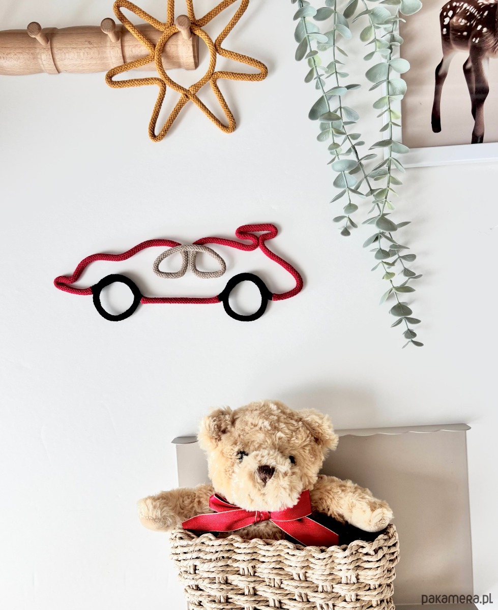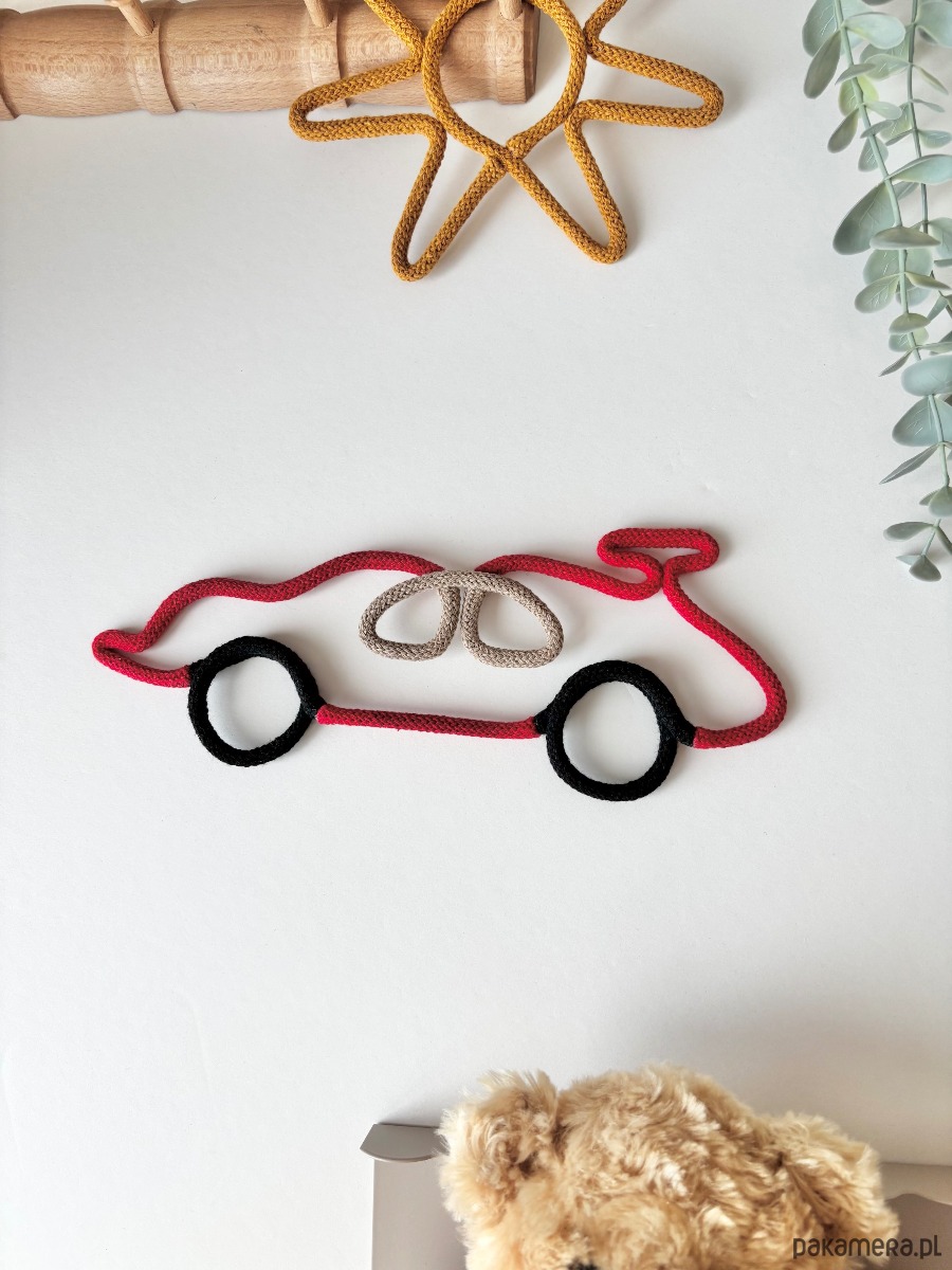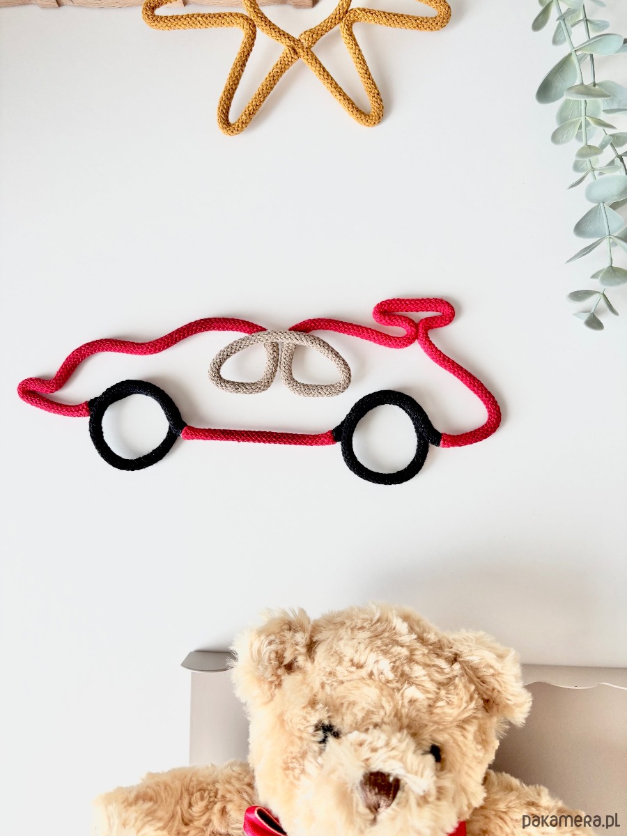 Ta dekoracja w kształcie samochodu wyścigowego to idealny dodatek do pokoju chłopca, który kocha auta i prędkość. Stworzona z myślą o rodzicach szukających oryginalnej i stylowej dekoracji do pokoju dziecka, która doda wnętrzu charakteru i dziecięcej radości.