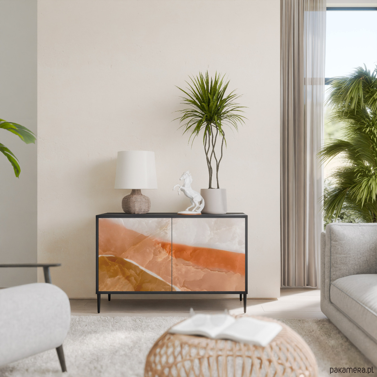 SANDHILLS SPLENDOUR Komoda 2-drzwiowa korpus Czarny Noga szpilka czarna