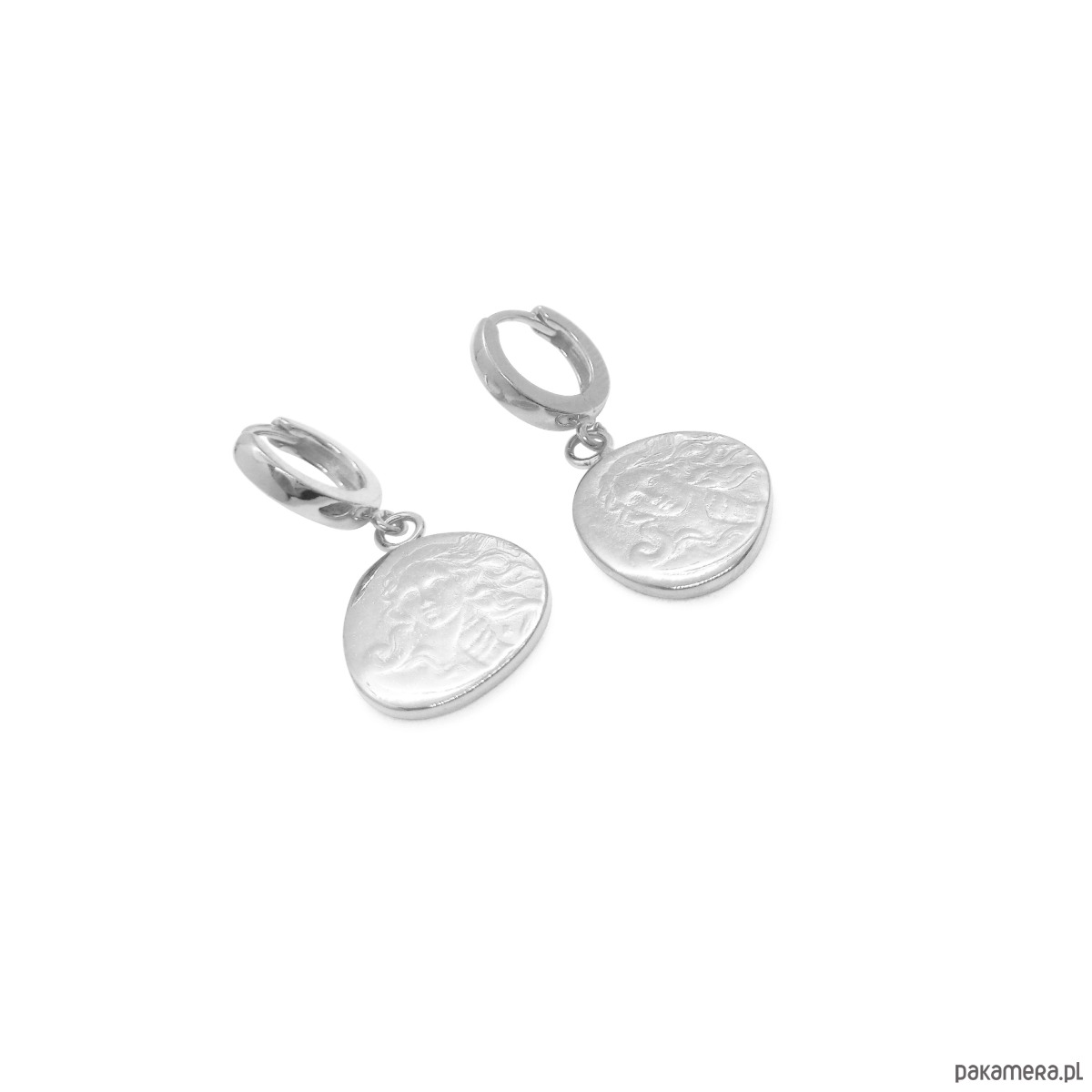 Proste owalne kolczyki przedstawiają wizerunek Wenus ze słynnego obrazu Sandro Botticellego. Na płaskim dysku widzimy kobiecą twarz. Jej charakterystyczny wizerunek można rozpoznać od razu, to słynna Wenus Botticellego. Renesansowa piękność na obrazie stoi w muszli unoszącej przez fale. Na kolczyku twarz jest lekko wypukła niczym delikatna mini płaskorzeźba.