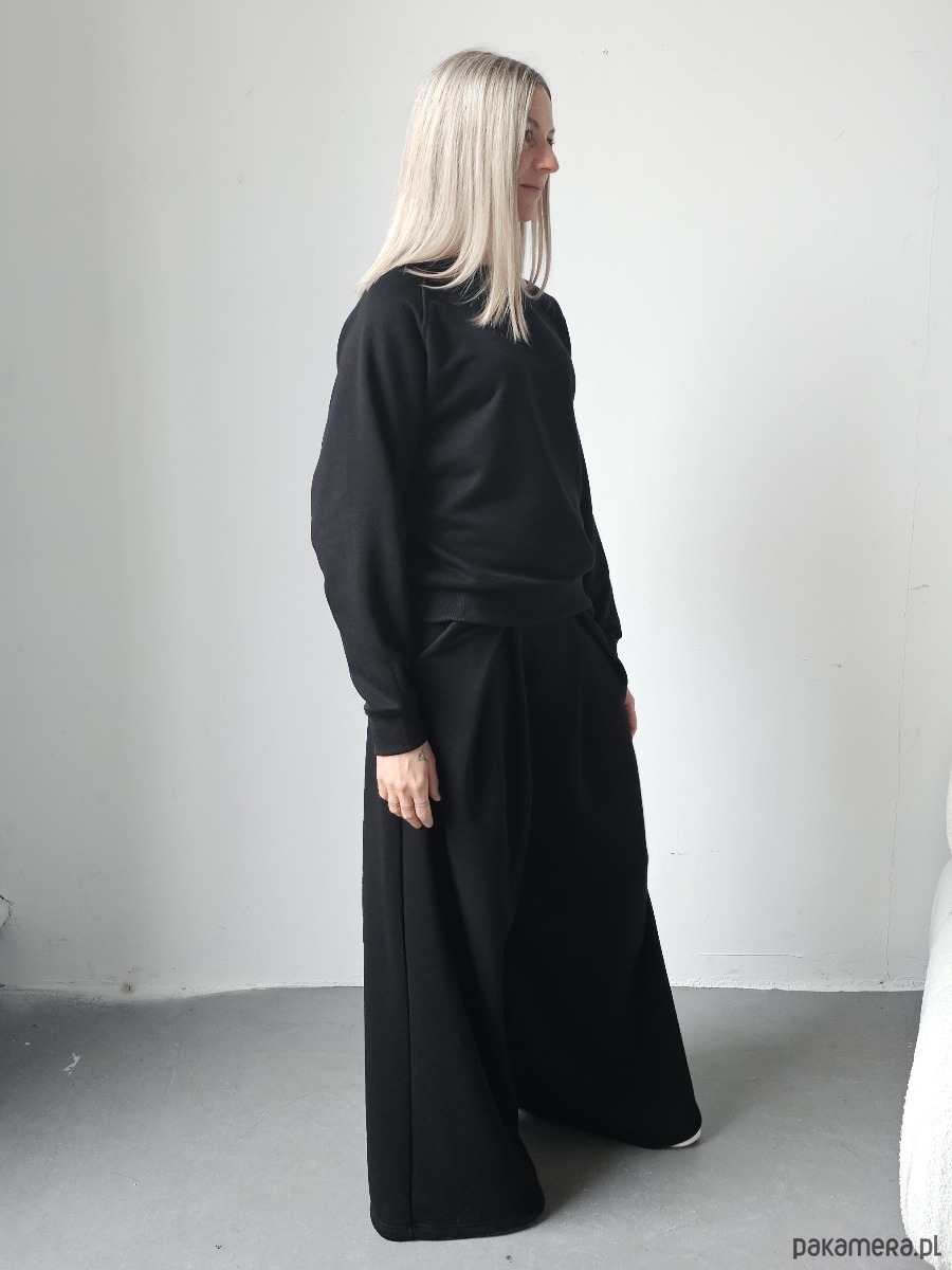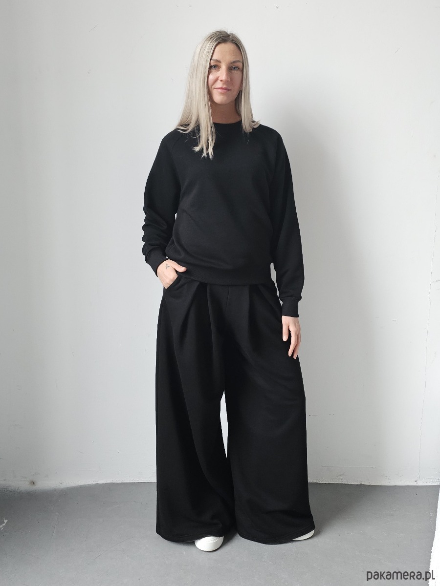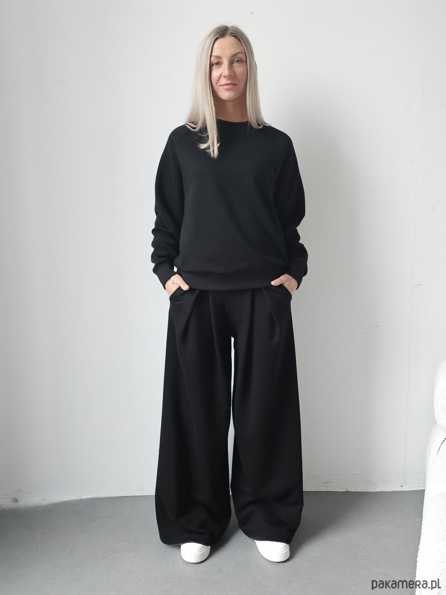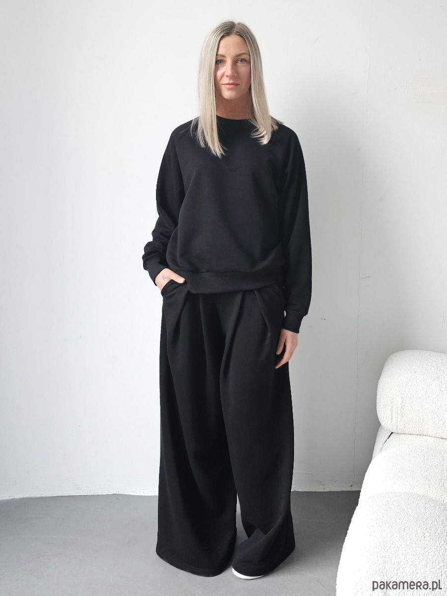 Sarai wygodny komplet bluza i szerokie spodnie z zakładkami Black