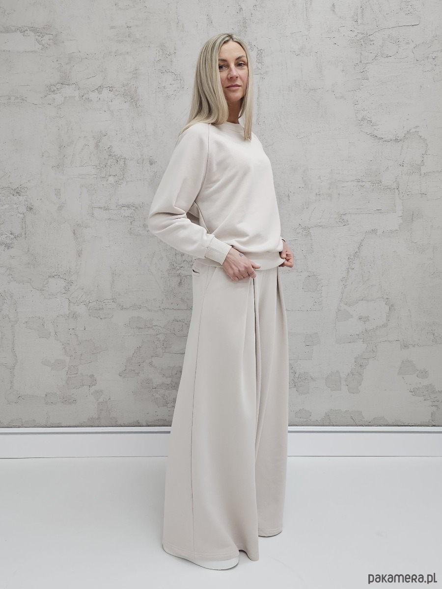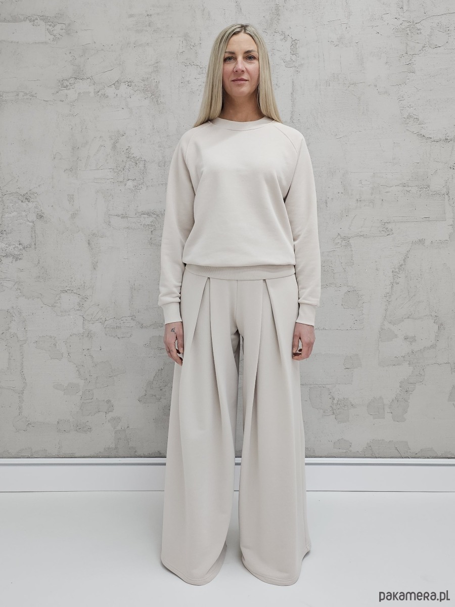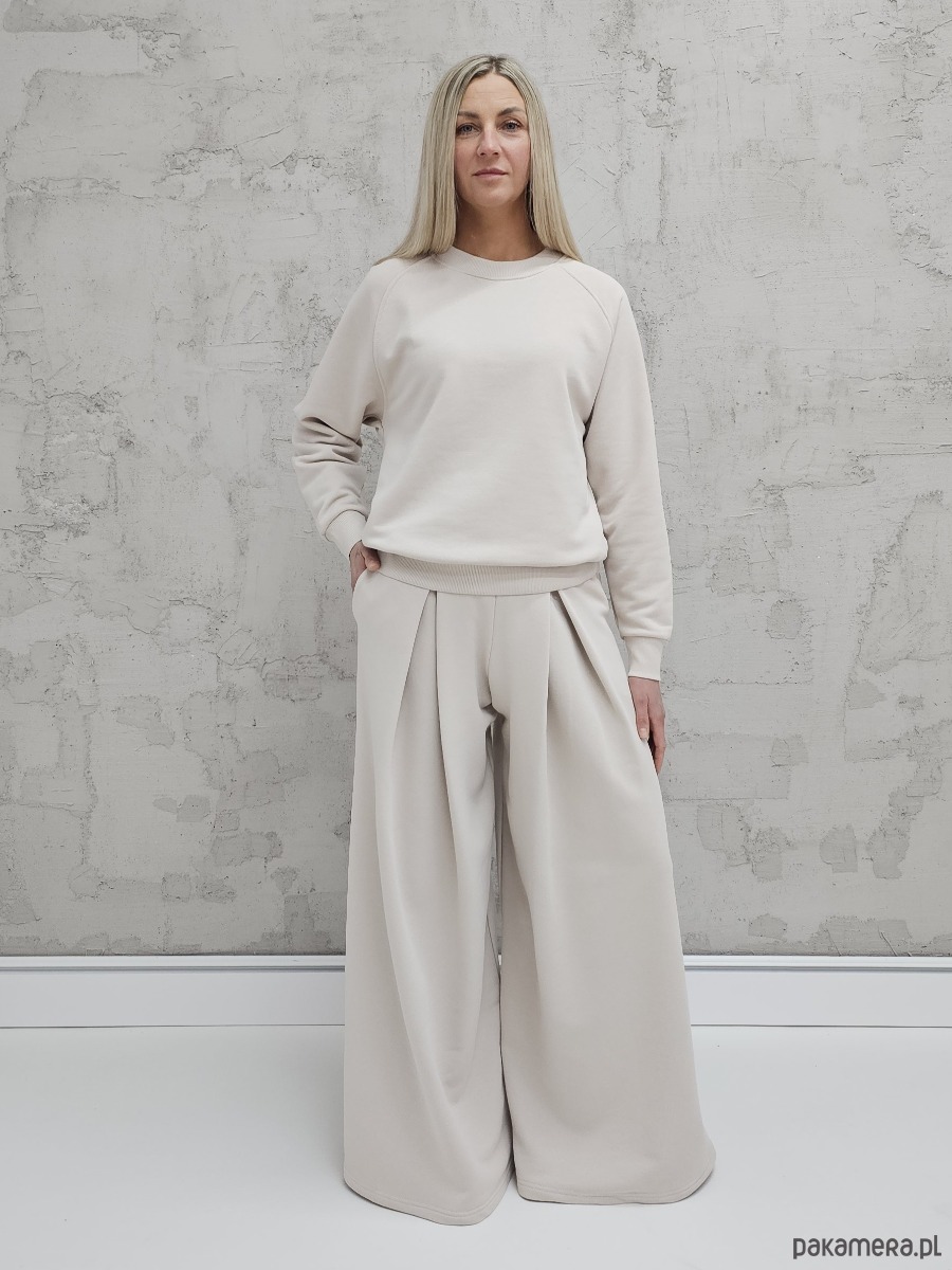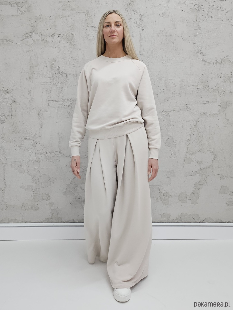 Sarai wygodny komplet bluza i szerokie spodnie z zakładkami Cloud