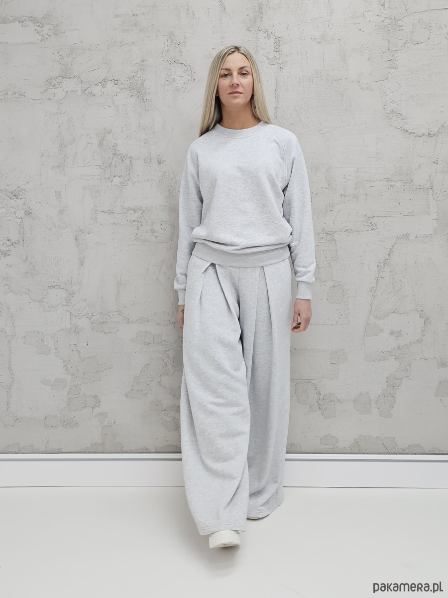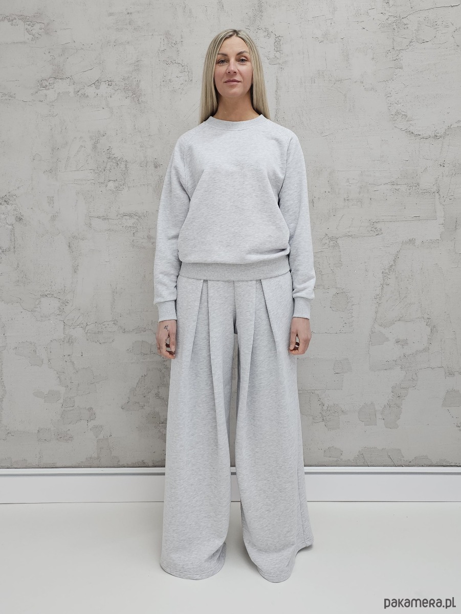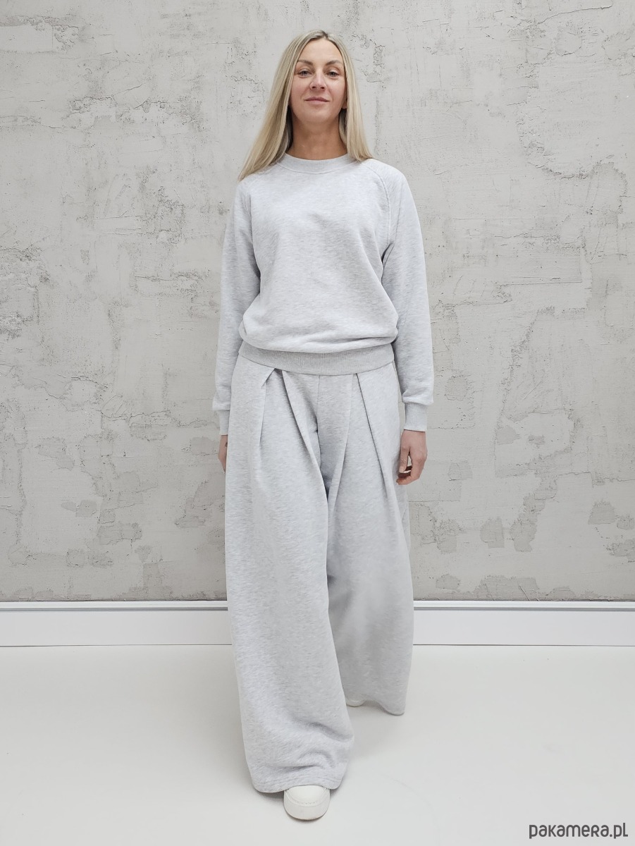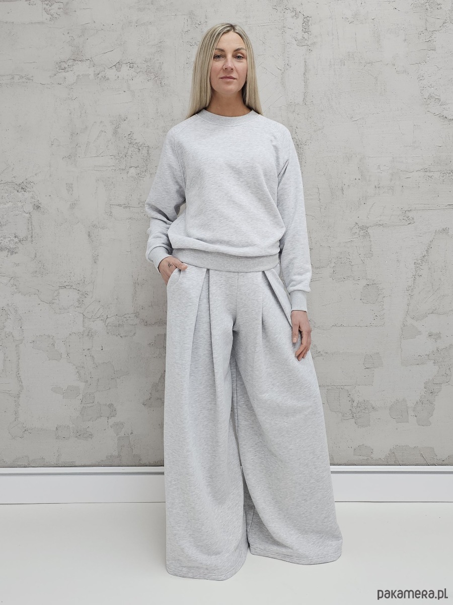 Sarai wygodny komplet bluza i szerokie spodnie z zakładkami gray melange
