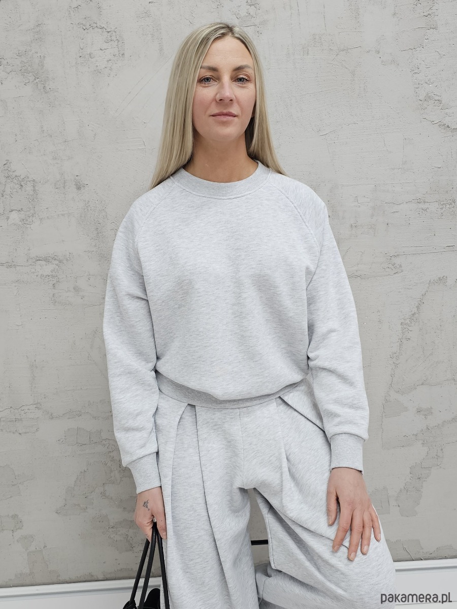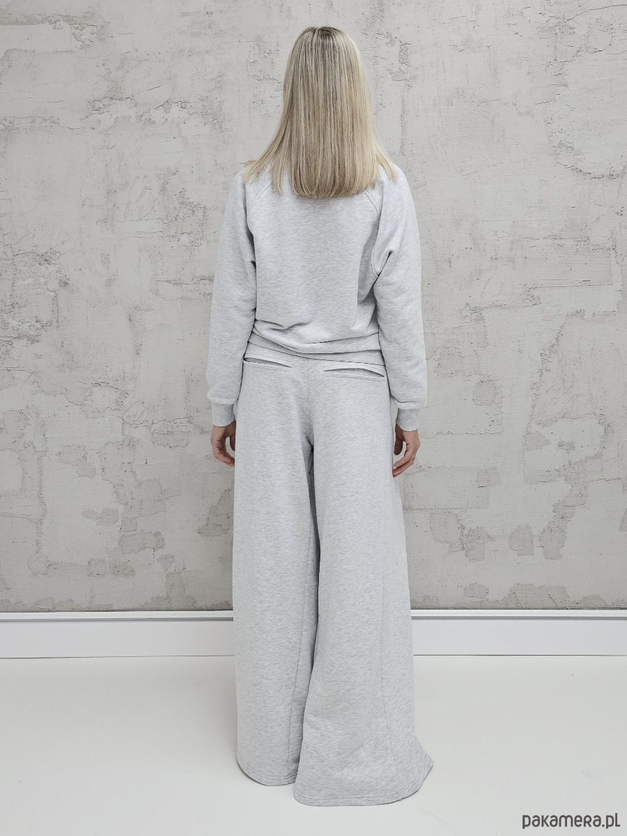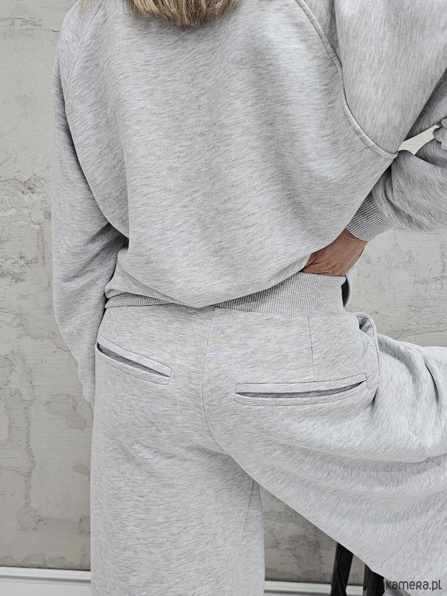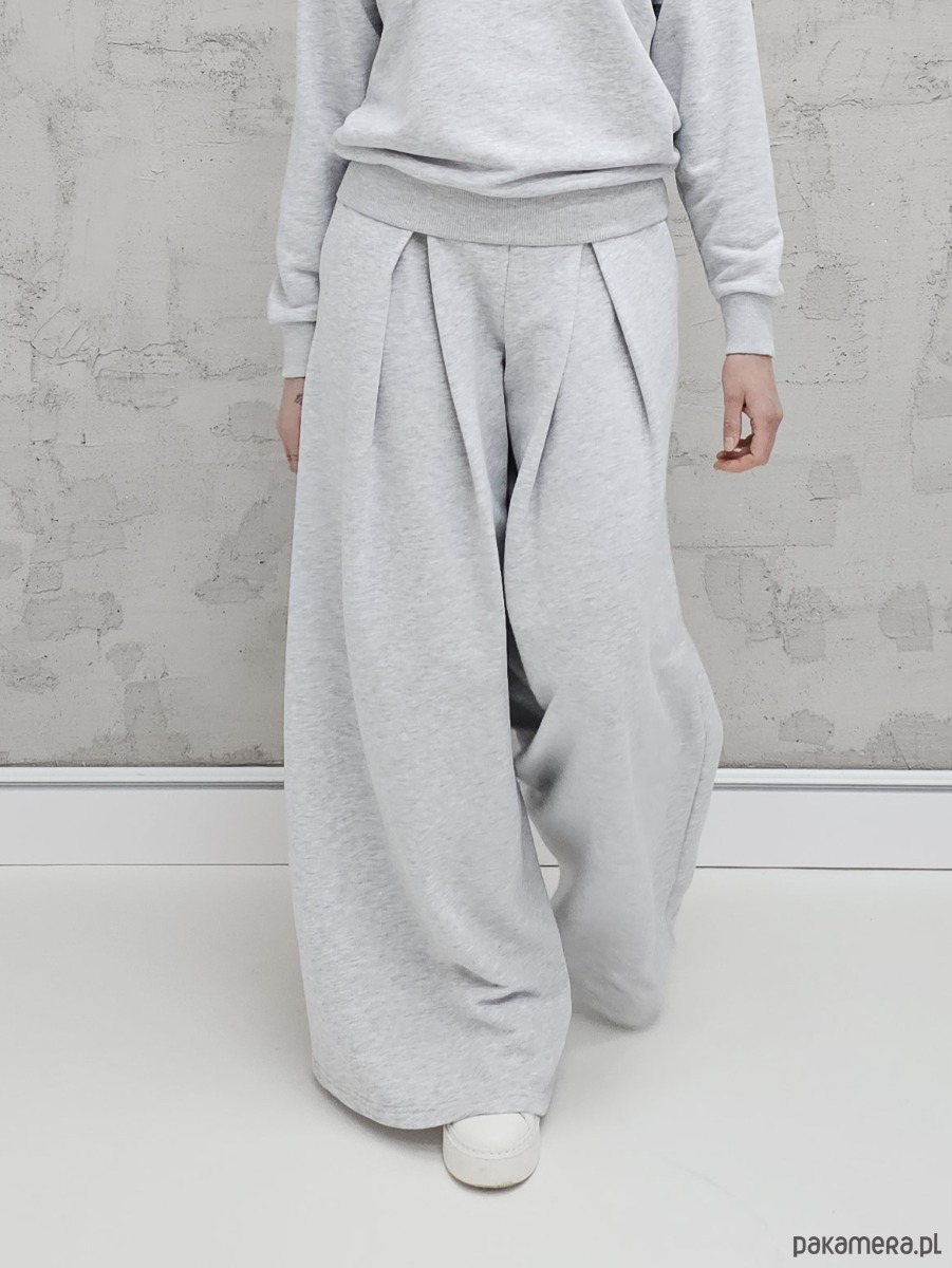 Sarai wygodny komplet bluza i szerokie spodnie z zakładkami gray melange
