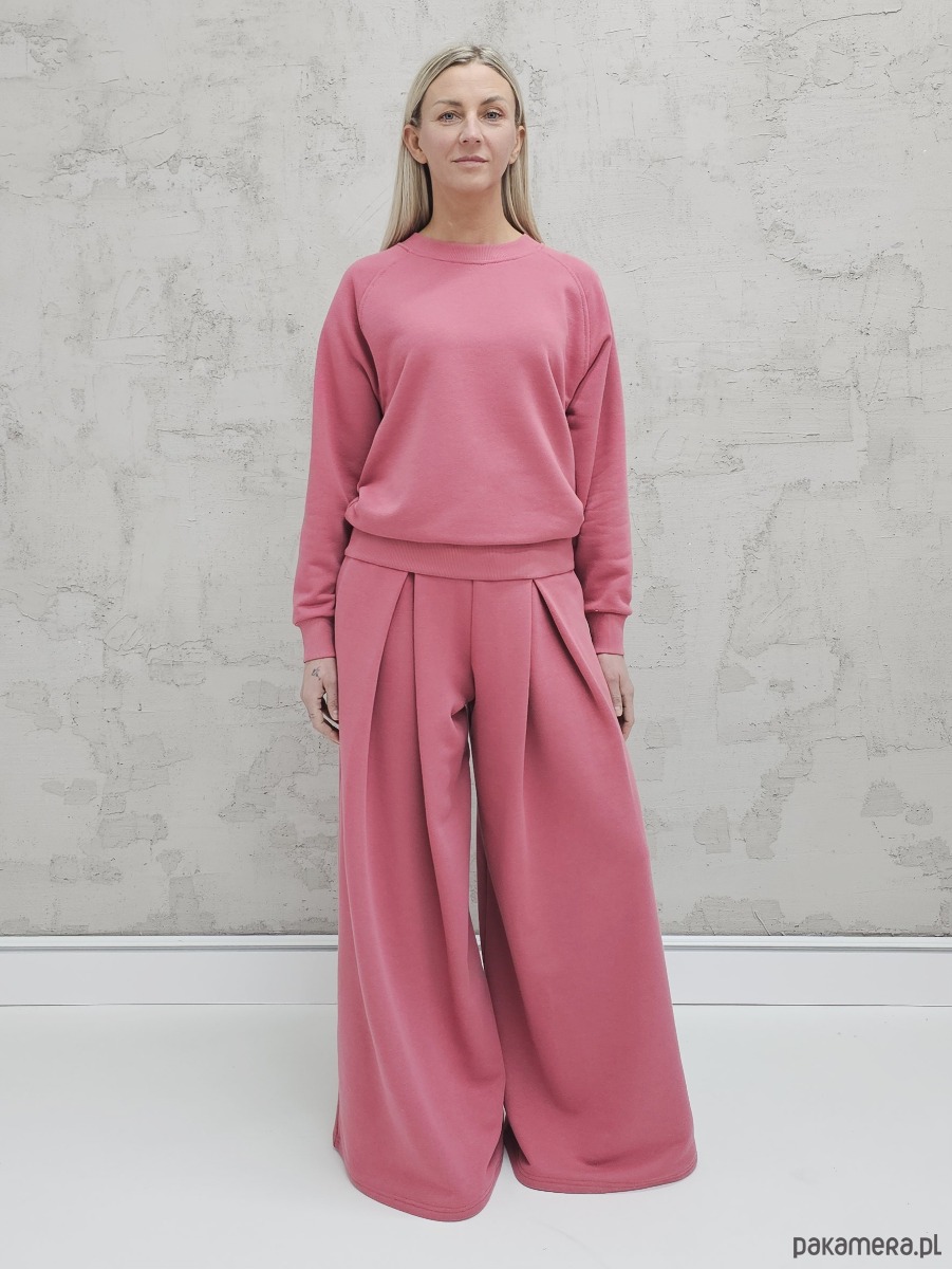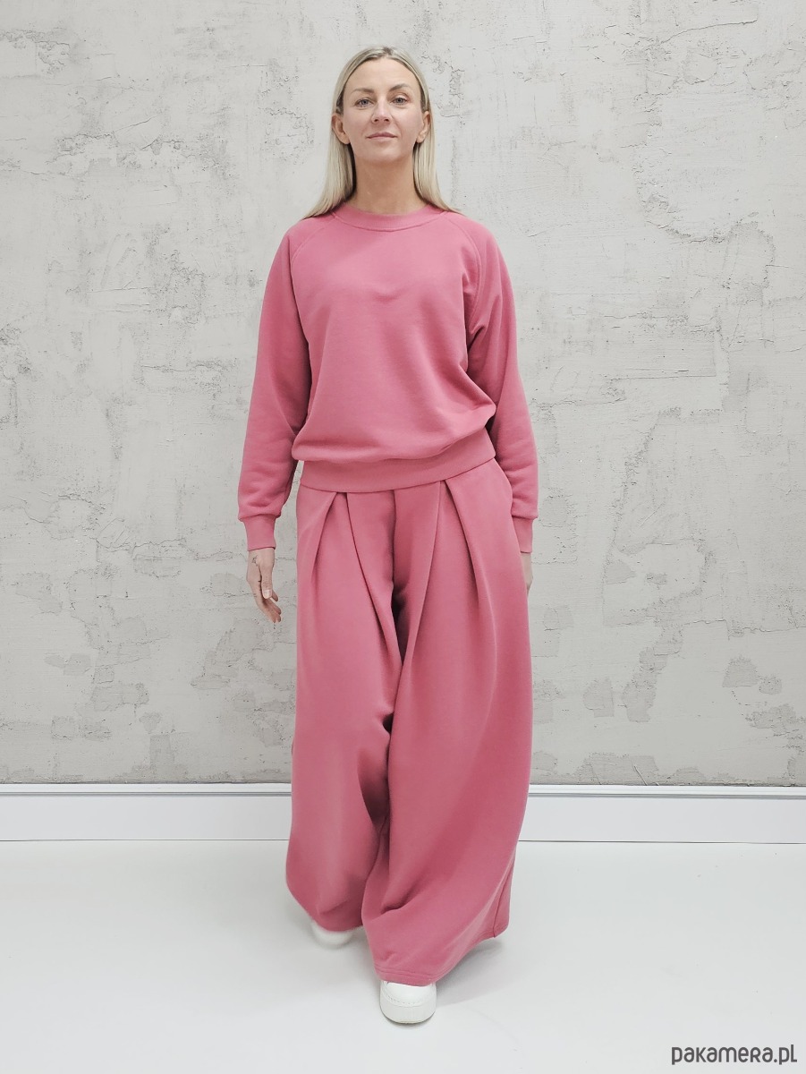 Sarai wygodny komplet bluza i szerokie spodnie z zakładkami Malaga
