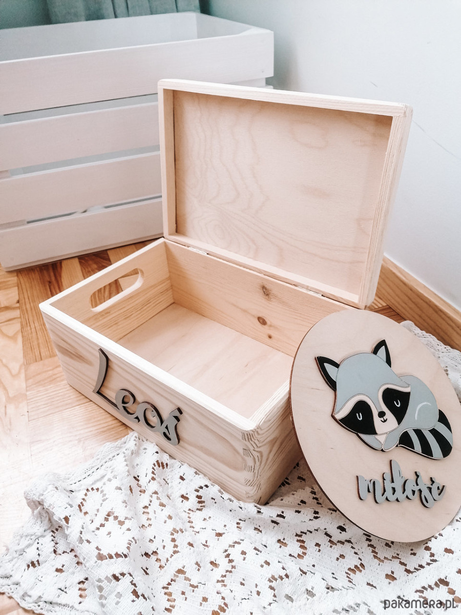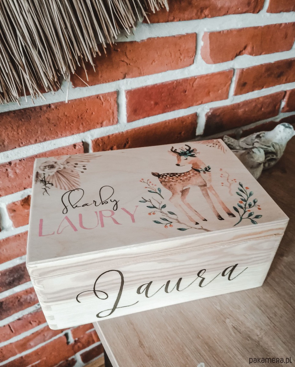 Piękne, dewniane pudełko na skarby i zabawki dla dziewczynki.