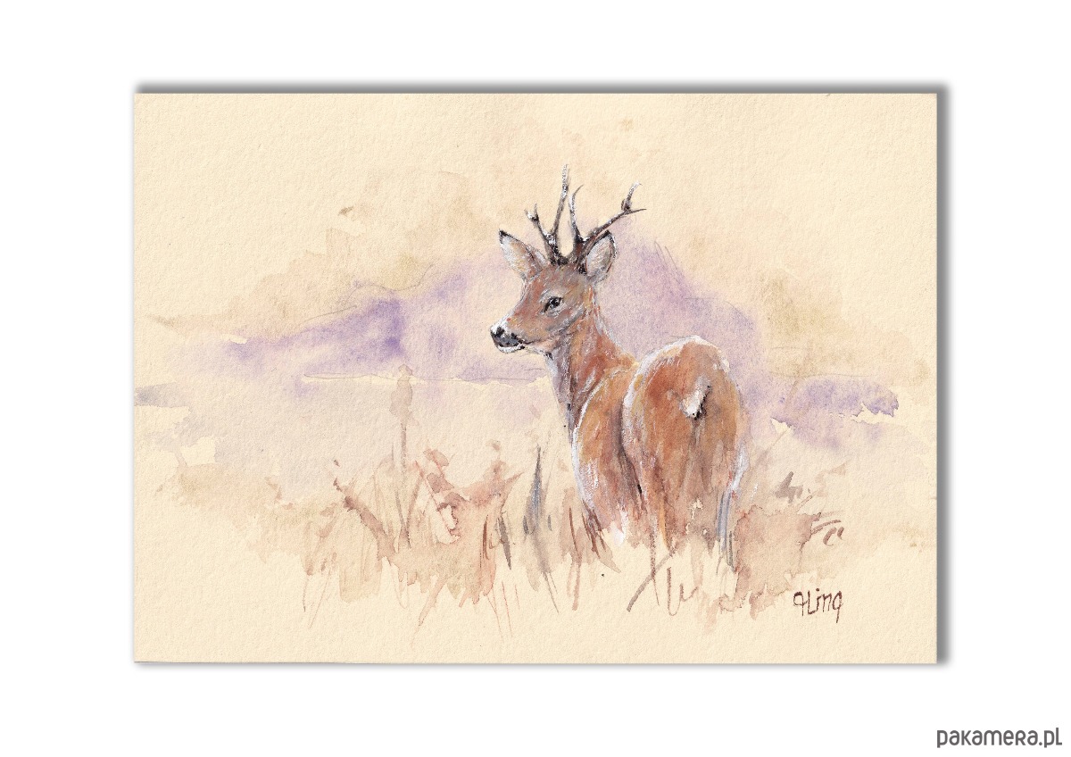 Akwarela ręcznie malowana, wykonana farbami akwarelowymi znanych producentów; na wysokogatunkowym 300g papierze (14,5 x 20cm).