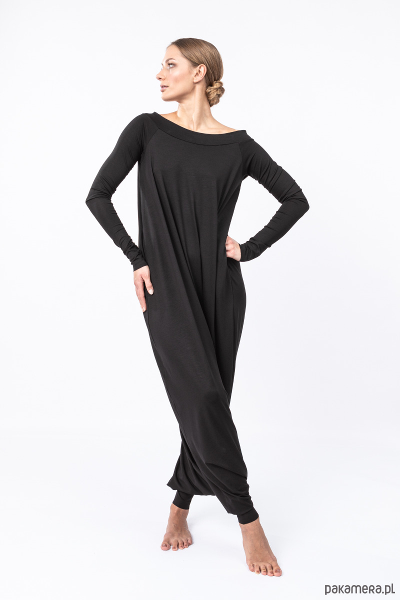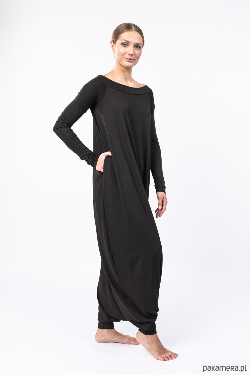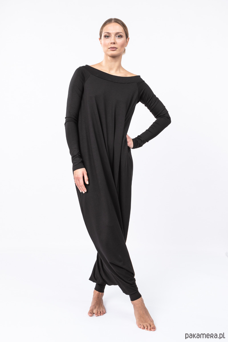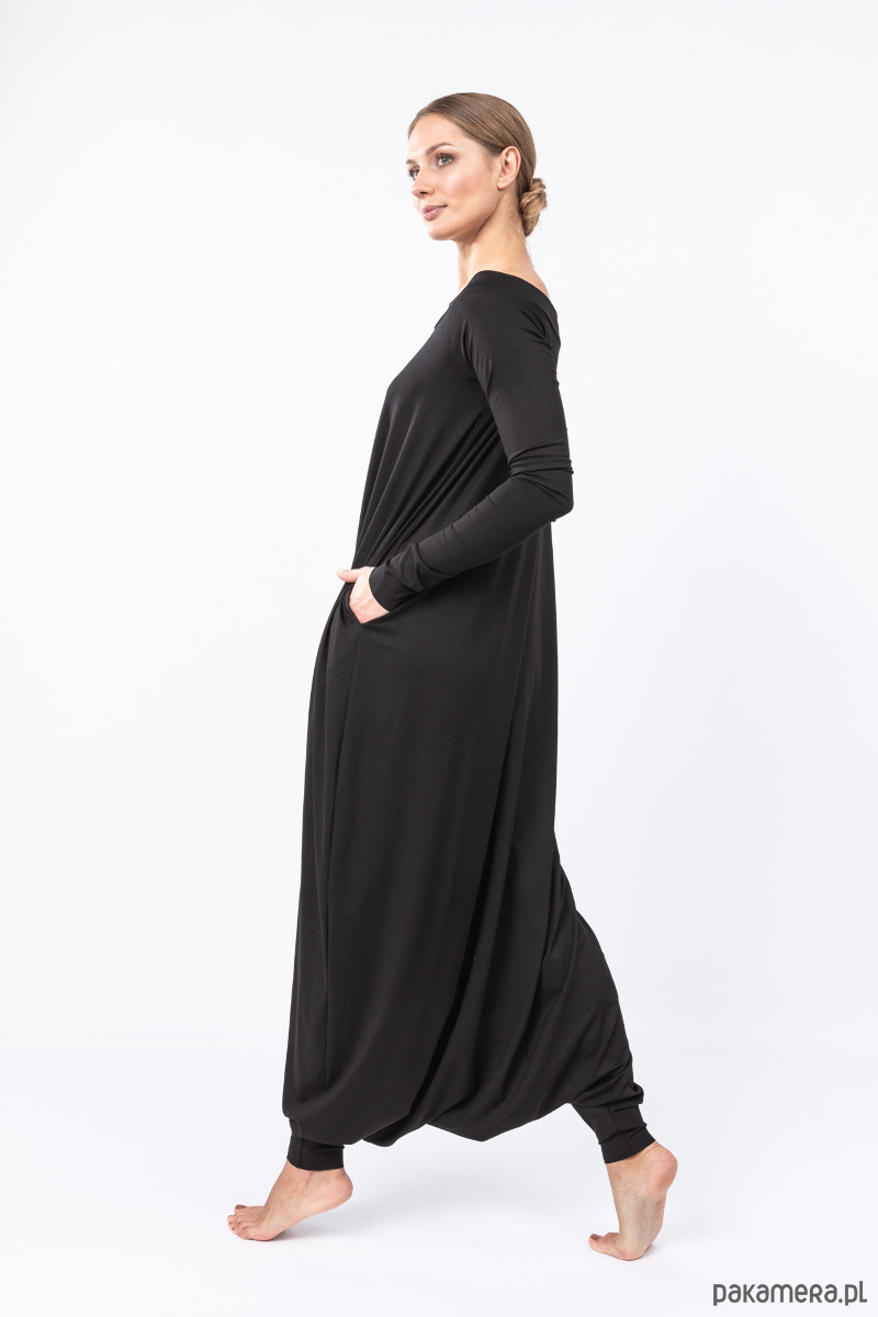 Wygodny, stylowy kombinezon sarouel uszyty z lejącej dzianiny (wiskoza 5% elastan) rękawy wąskie, długie, do przymarszczenia na przedramieniu, kieszenie w szwach, kolory do uzgodnienia, super komfortowe, wygodne, stylowe,