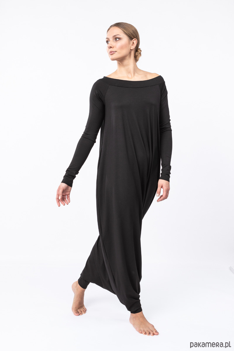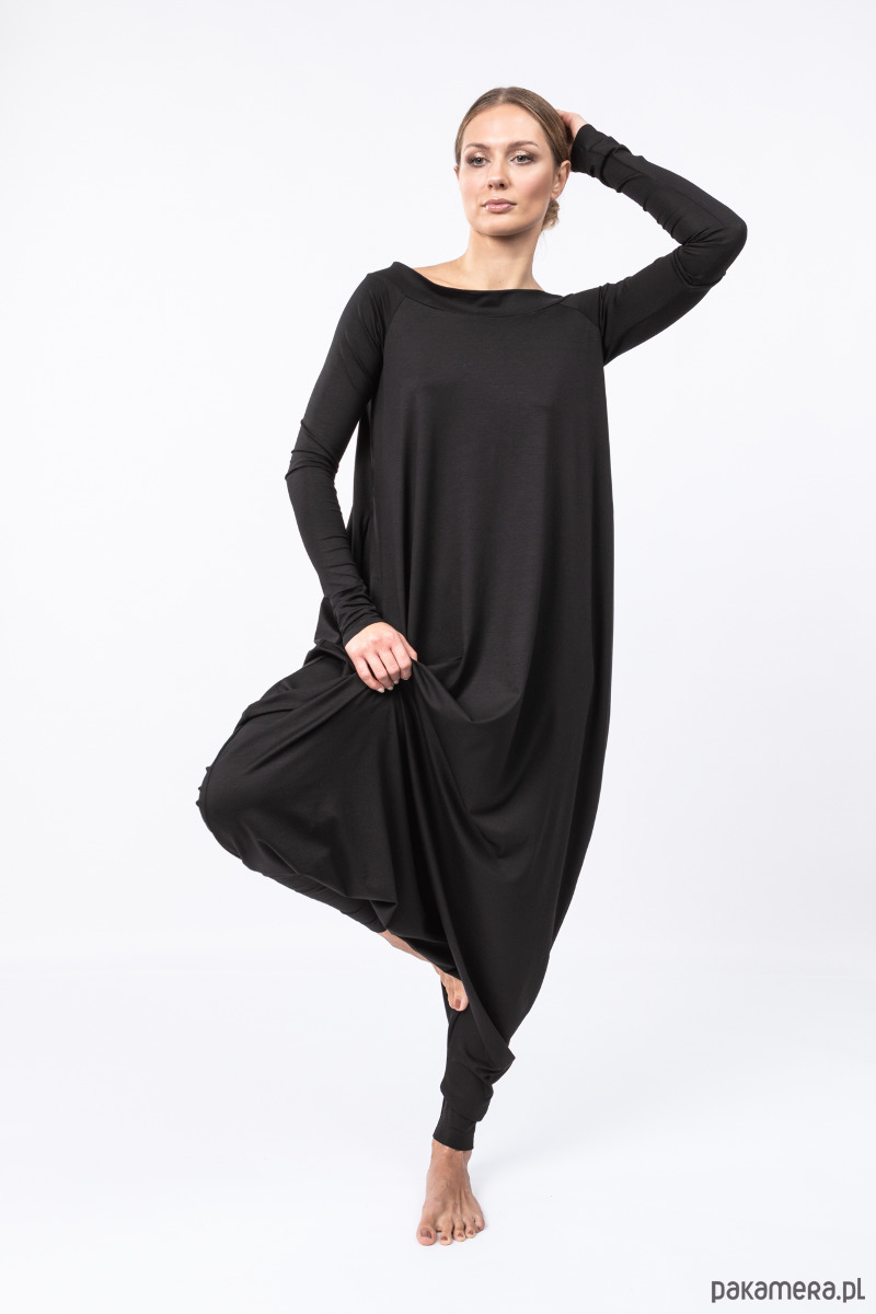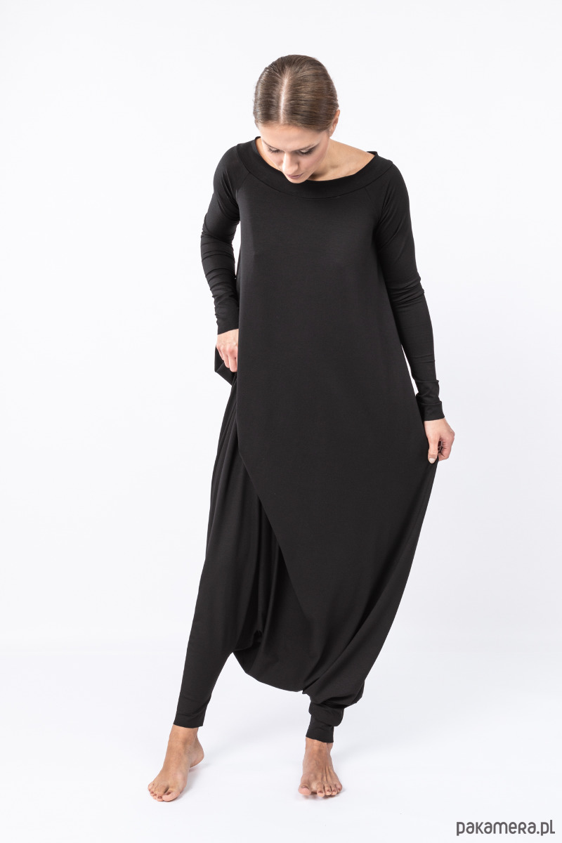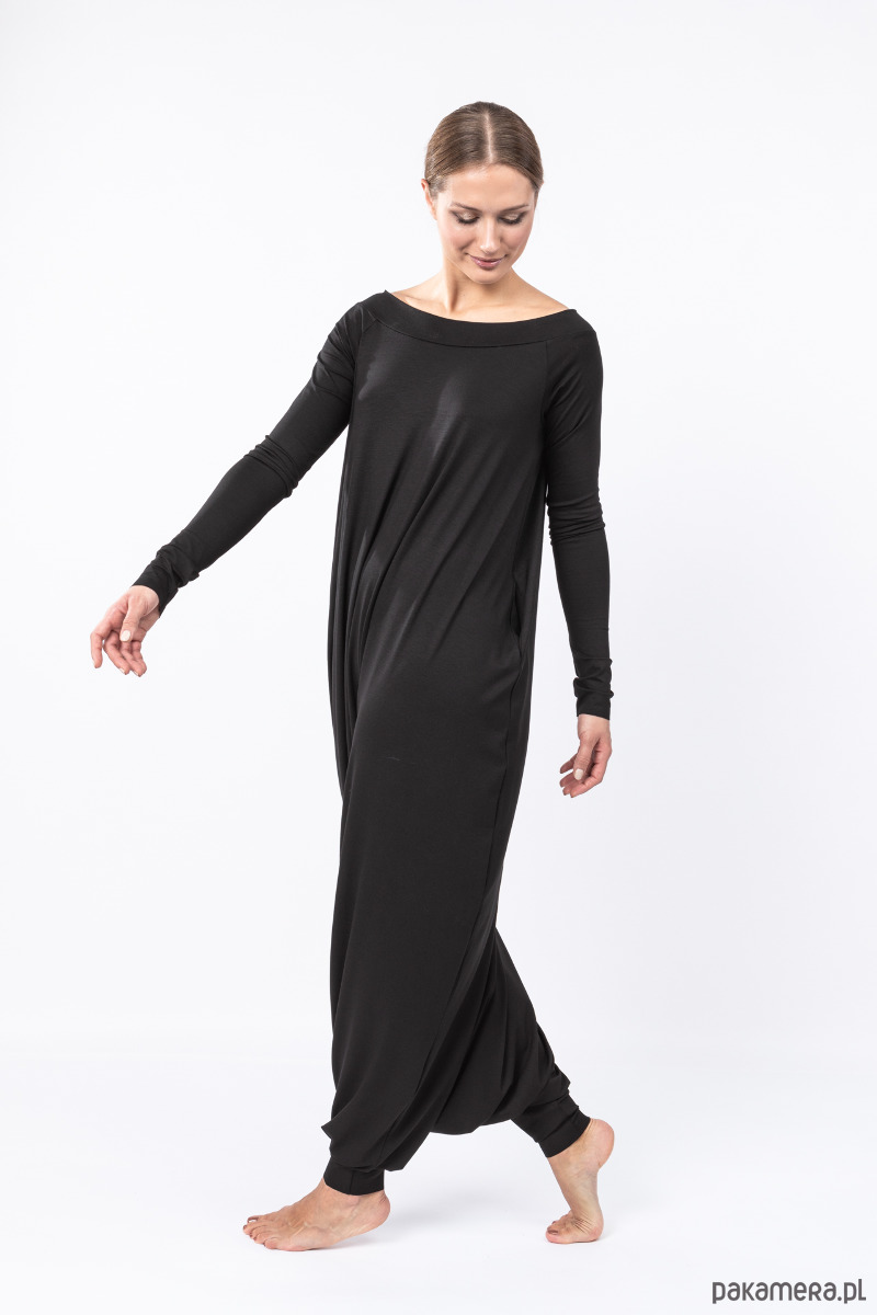 Wygodny, stylowy kombinezon sarouel uszyty z lejącej dzianiny (wiskoza 5% elastan) rękawy wąskie, długie, do przymarszczenia na przedramieniu, kieszenie w szwach, kolory do uzgodnienia, super komfortowe, wygodne, stylowe,