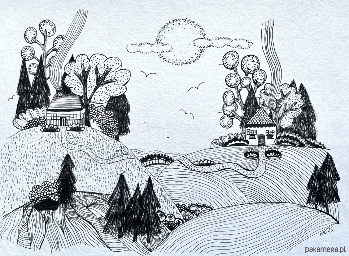 Sztuka ścienna, obraz kreślony w formacie A4.