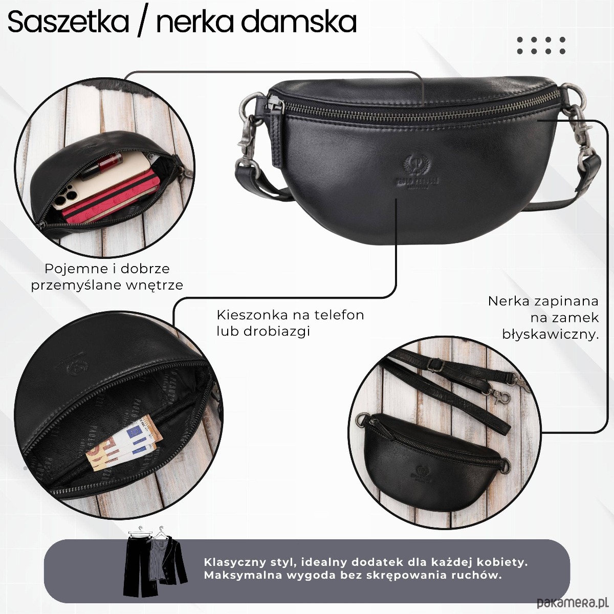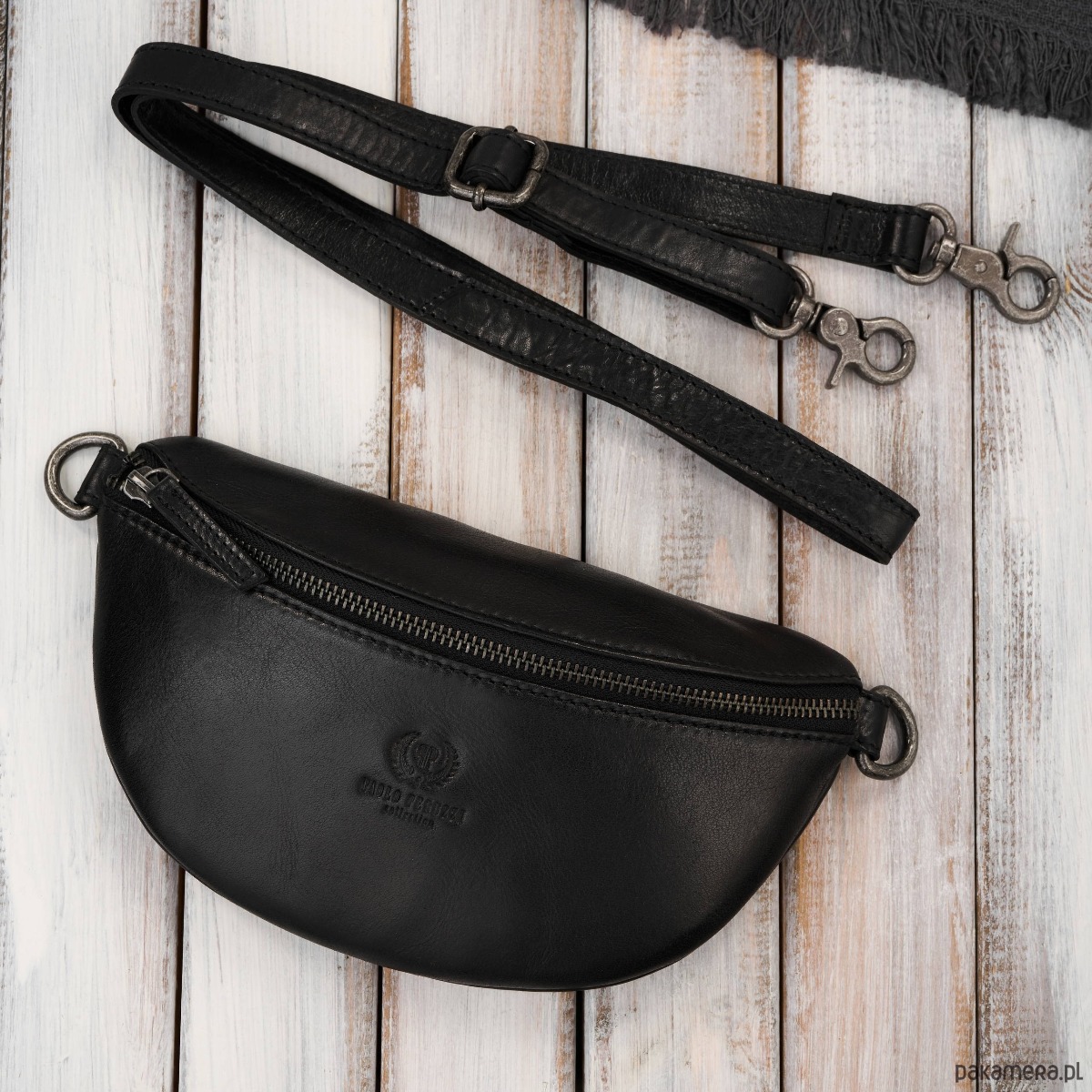 Saszetka damska skórzana nerka crossbody do ręki czarna Paolo Peruzzi SL-05-BL