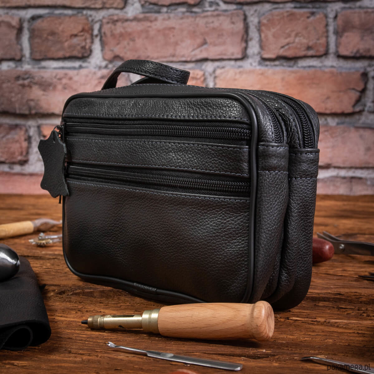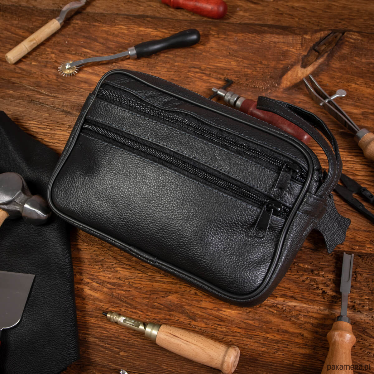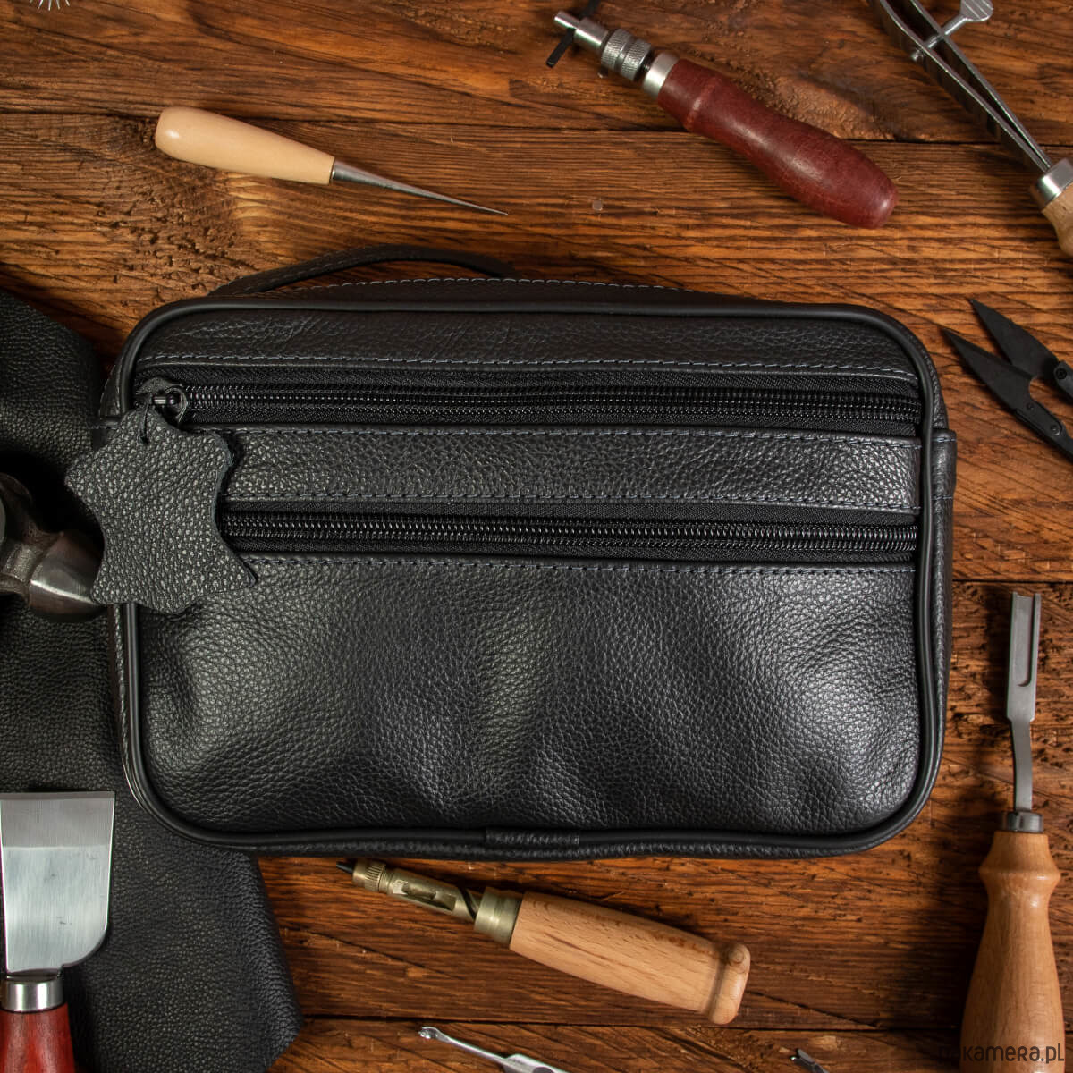 - saszetka z paskiem do ręki (pasek jest na stałe wszyty w korpus saszetki)