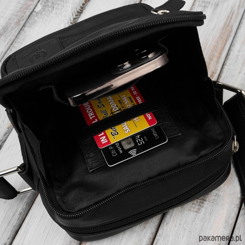 Pierwsza komora: dedykowana kieszonka na telefon + 2 kieszenie na karty lub wizytówki