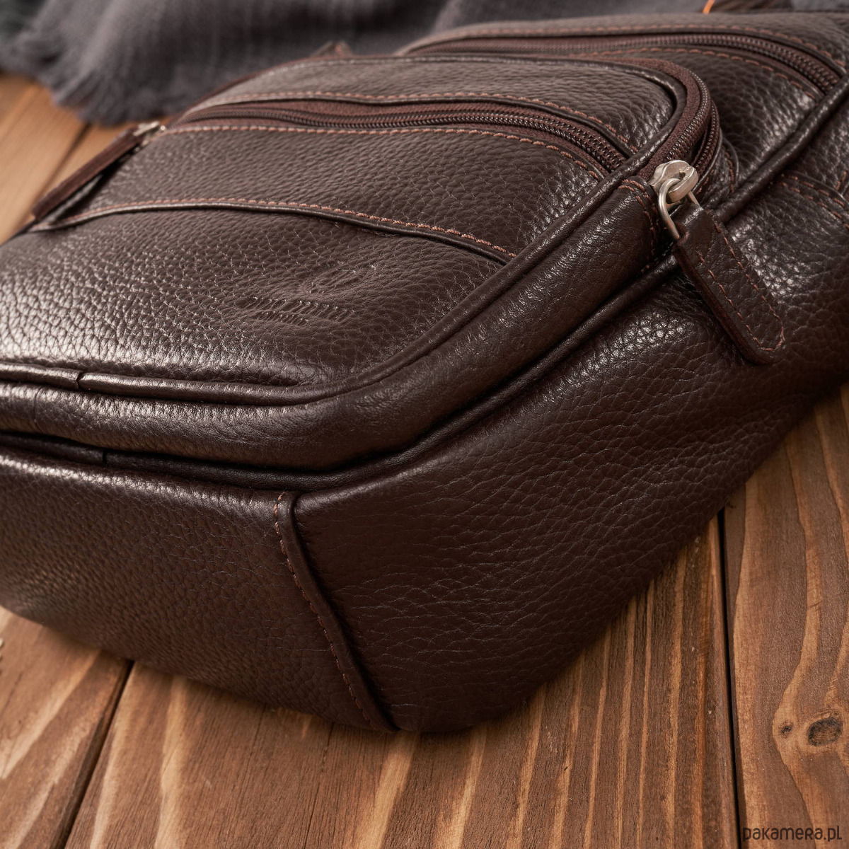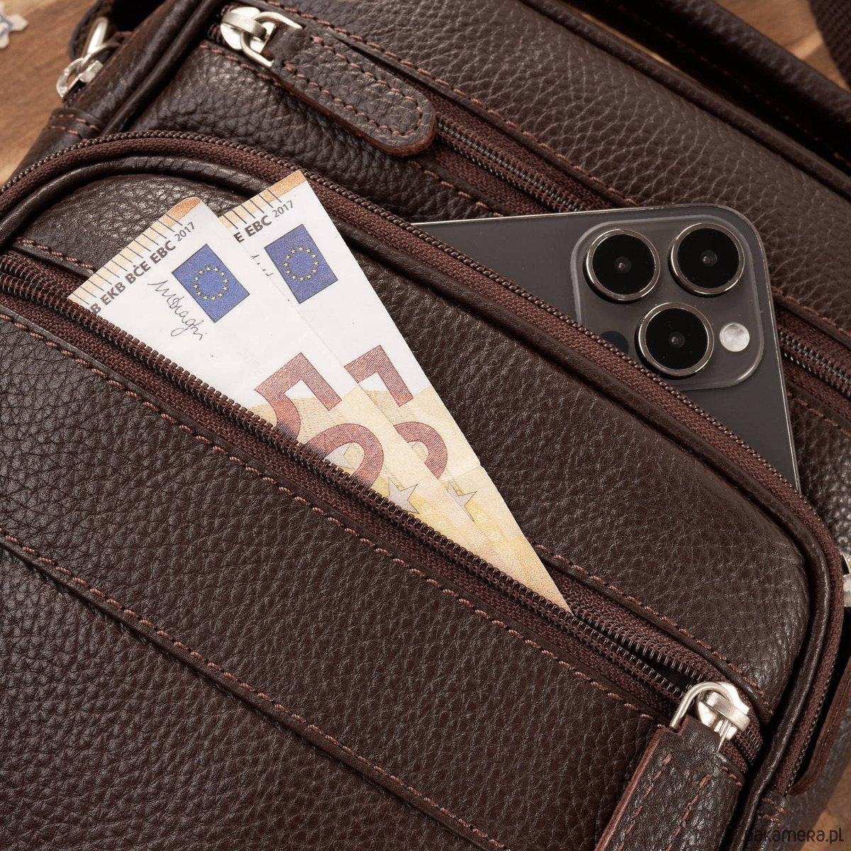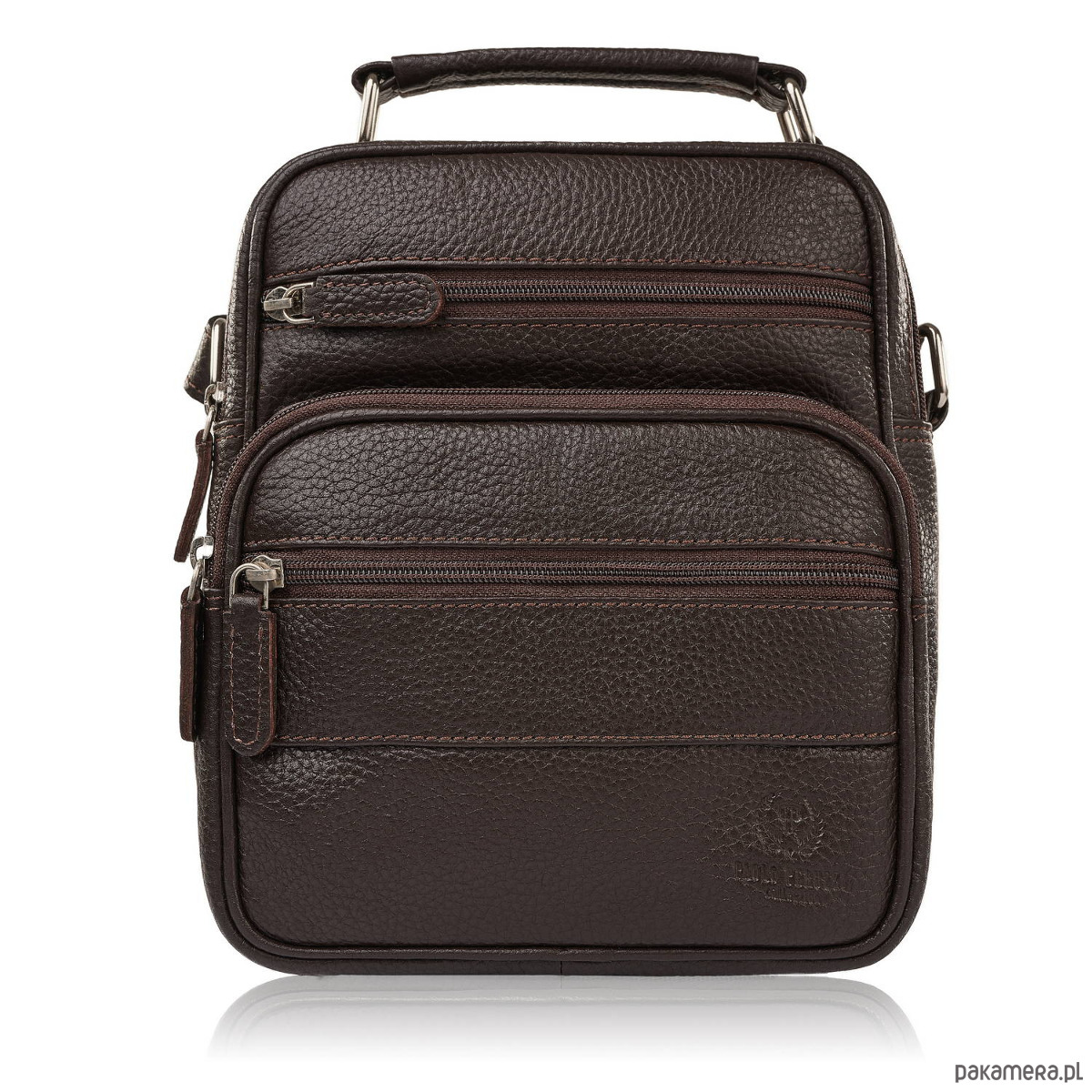 Prezentujemy nowość w modelach saszetek męskich na ramie T-128 od Paolo Peruzzi! Obserwując trendy w codziennych męskich stylizacjach, z przekonaniem stwierdzamy, że męskie skórzane saszetki stały się ich niemalże nieodłącznym elementem. Trend nie jest zaskoczeniem, gdyż prezentowane akcesorium, to praktyczny i bardzo wygodny wybór dla mężczyzn, którzy cenią sobie zorganizowanie i klasę, nawet w aspekcie garderoby codziennej.Saszetka męska została wykonana z wysokiej jakości naturalnej skóry groszkowanej. Skóra naturalna użyta do produkcji torby jest trwała i wytrzymała. Jedna przestronna komora i pięć praktycznych kieszeni, w tym specjalna kieszeń na smartphone, pomogą utrzymać Ci porządek i szybko znaleźć to, czego potrzebujesz w każdej sytuacji. Klasyczny brązowy kolor w połączeniu z subtelnością srebrnych okuć dodaje elegancji w codziennych oraz tych bardziej formalnych stylizacjach. Zamykana na solidny zamek błyskawiczny, saszetka gwarantuje bezpieczeństwo Twoich rzeczy.
