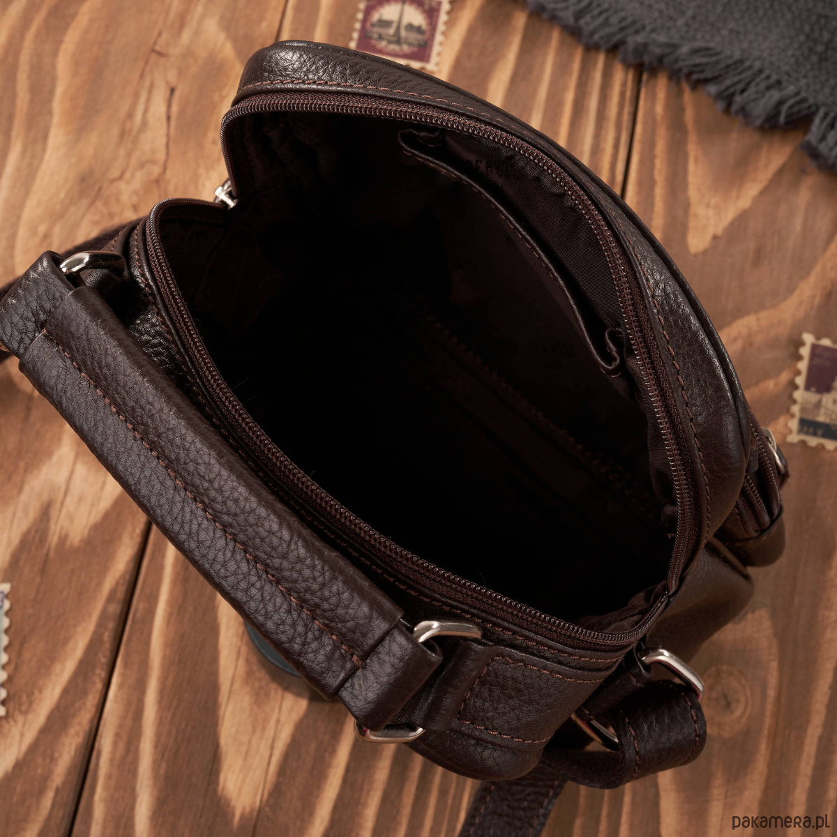 SASZETKA MĘSKA NA RAMIĘ SKÓRZANA ELEGANCKA DO PRACY BRĄZOWA T-128-BR