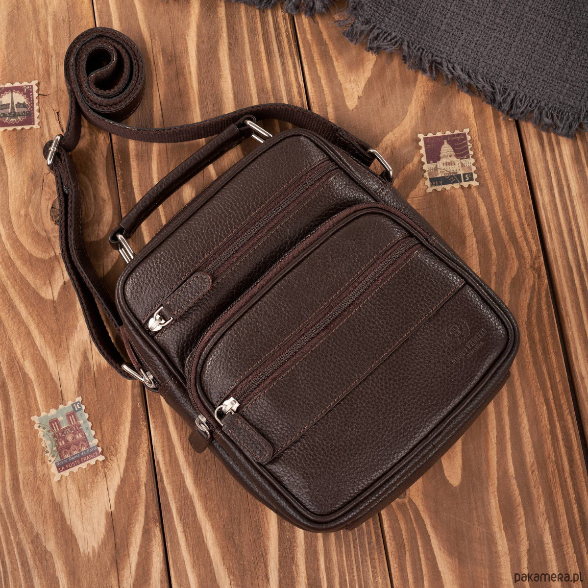 Saszetka męska na ramię skórzana elegancka do pracy praktyczna brązowa T-128-BR