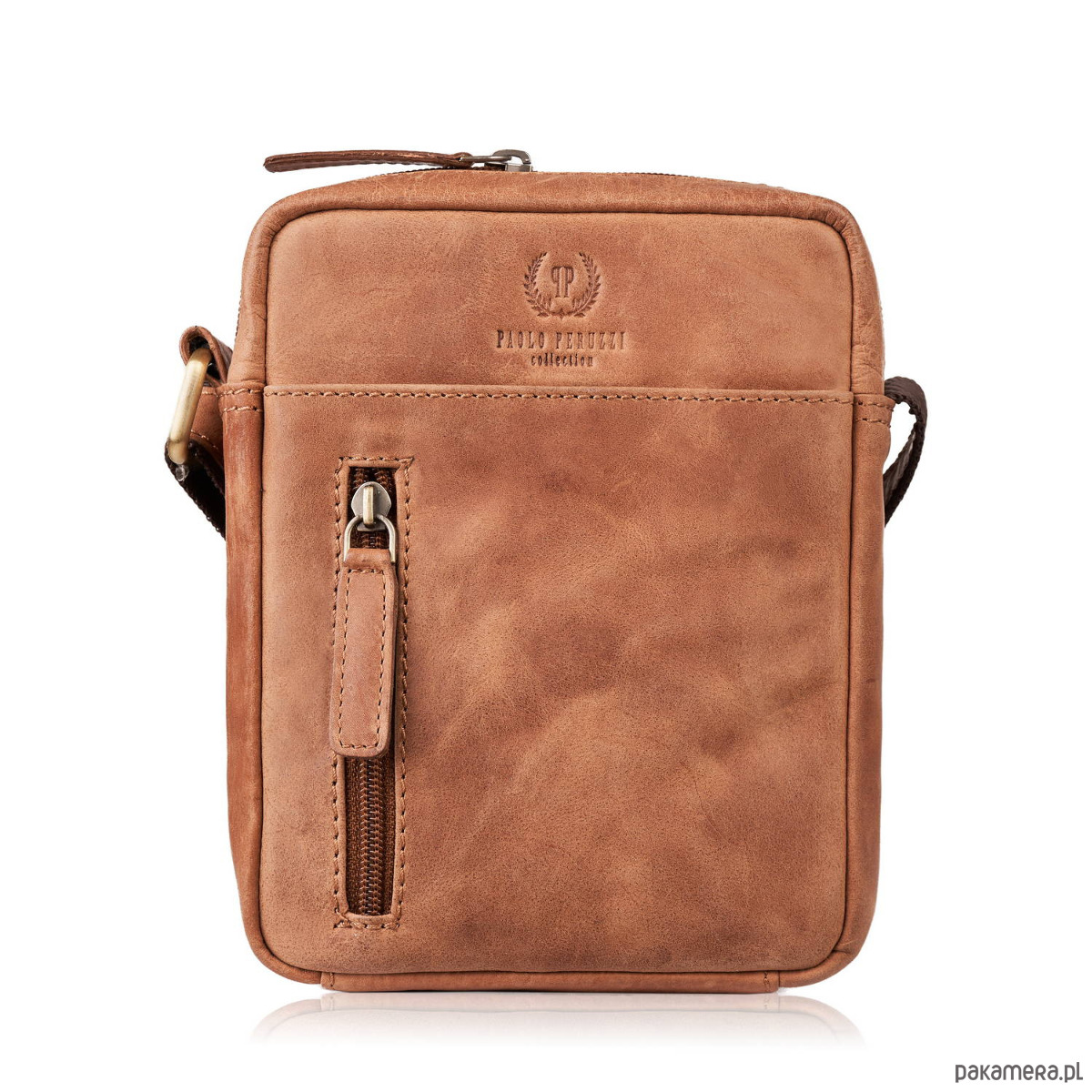 Saszetka męska skórzana na ramię w kolorze koniakowym Paolo Peruzzi