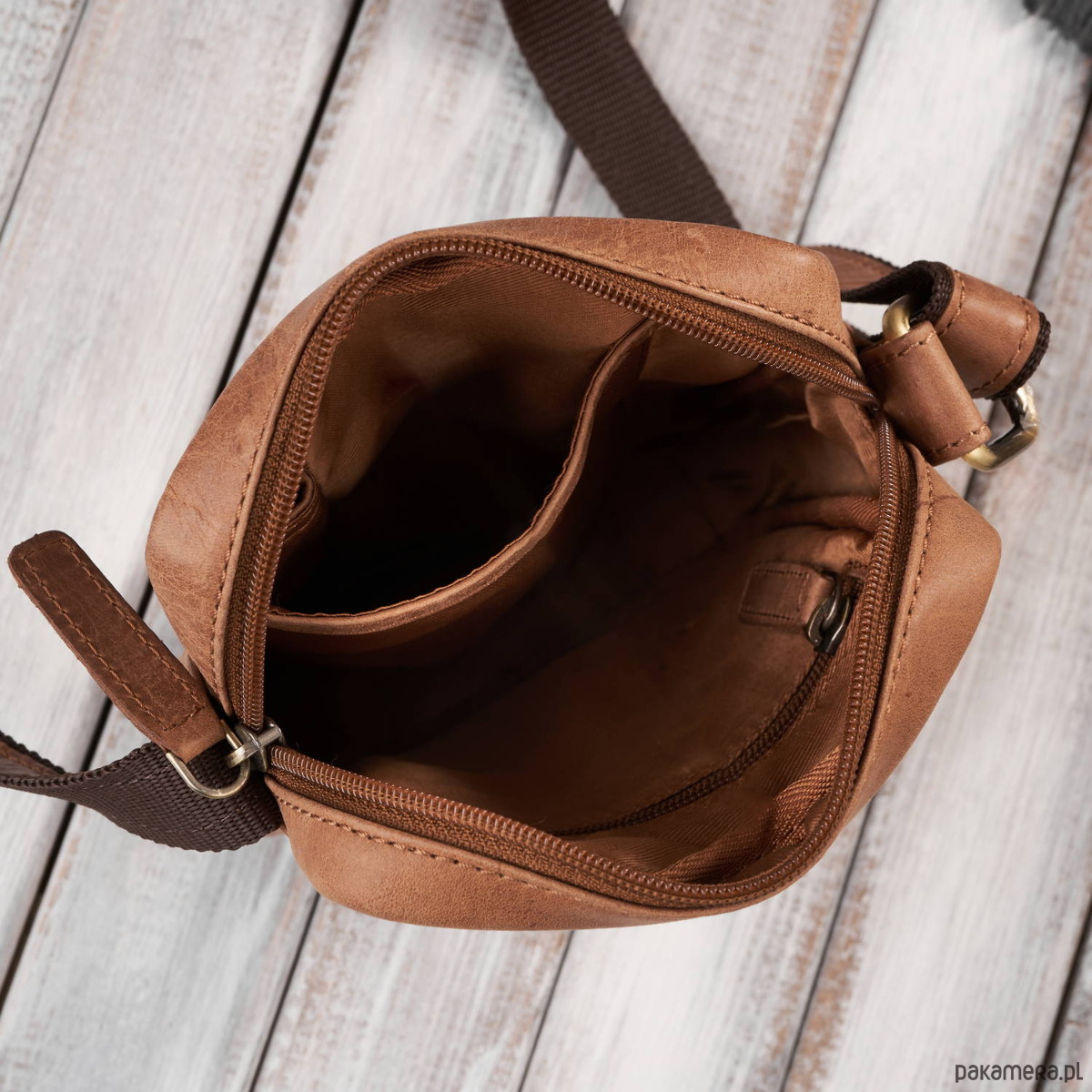 Saszetka męska na ramię skórzana koniakowa mała Paolo Peruzzi AY-05-HCG