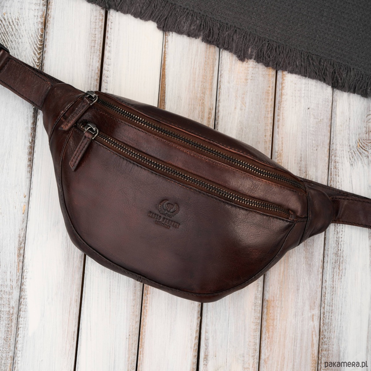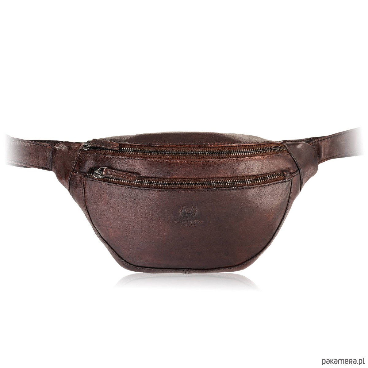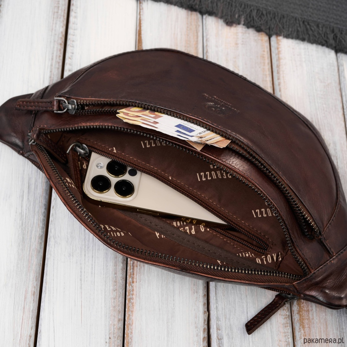 Saszetka męska nerka skórzana na pas brązowa elegancka Paolo Peruzzi SL-04-BR