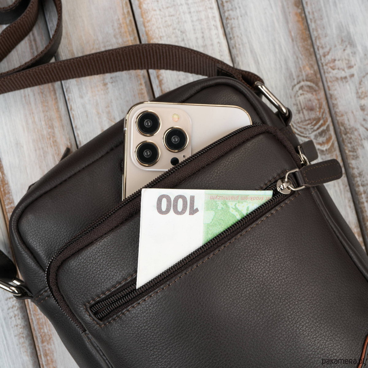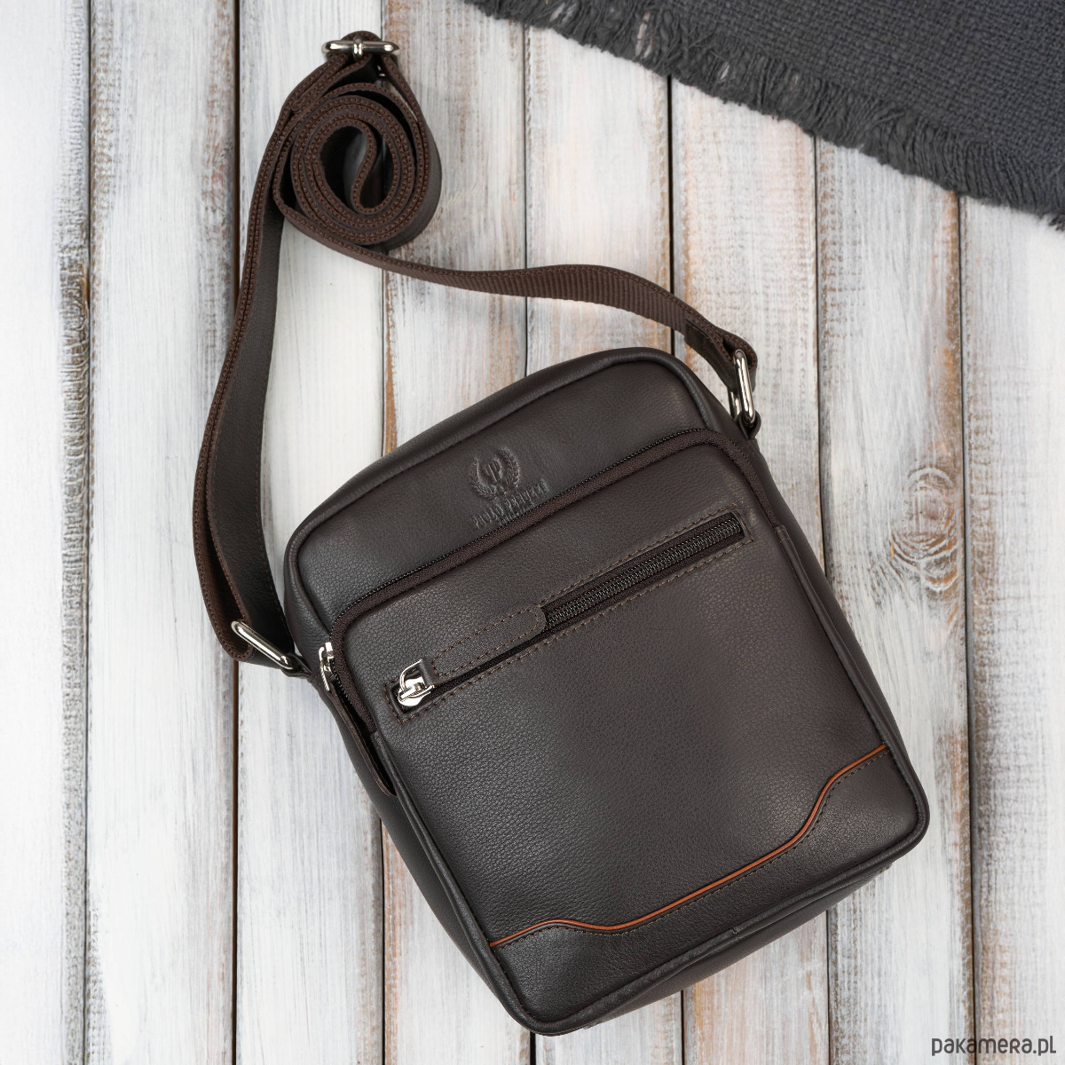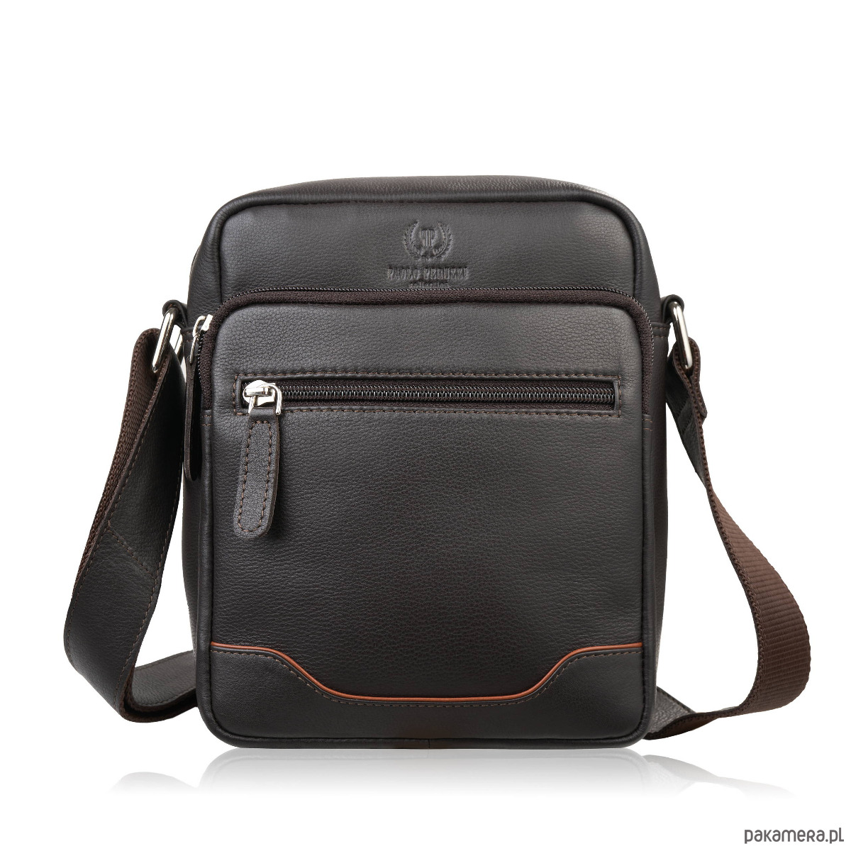 Saszetka męska skórzana na ramię brązowa z wcięciem Paolo Peruzzi