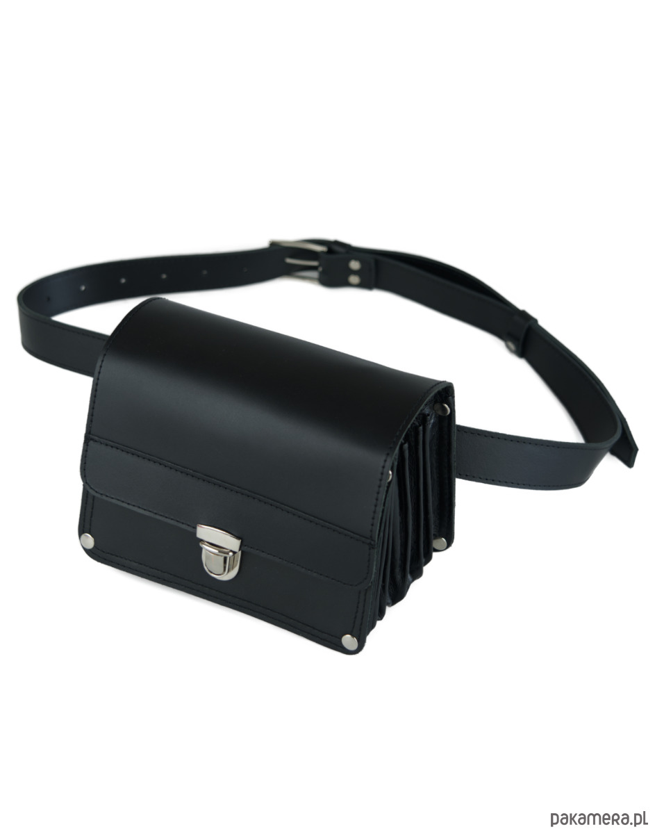 Do saszetki dołączony jest pasek do spodni. Saszetkę mocuje się do paska przy użyciu szlufek znajdujących się na tyle torby.