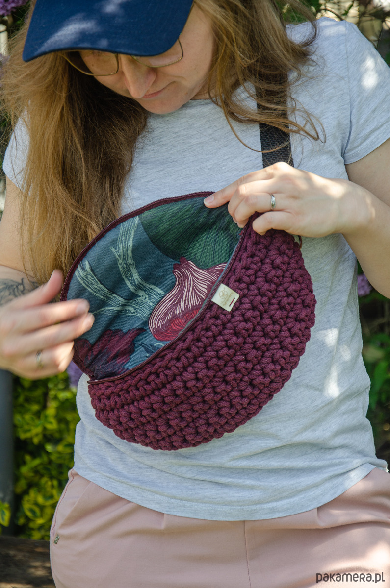 Ta bordowa saszetka nerka handmade została wykonana na szydełku ze sznurka bawełnianego oraz posiada podszewkę i jest zapinana na zamek. Jest ona efektem pasji do rękodzieła oraz starannej pracy rękodzielniczki Dominiki Dobrzenieckiej. Ręczne wykonanie tej nerki gwarantuje jej solidność i wysoką jakość.