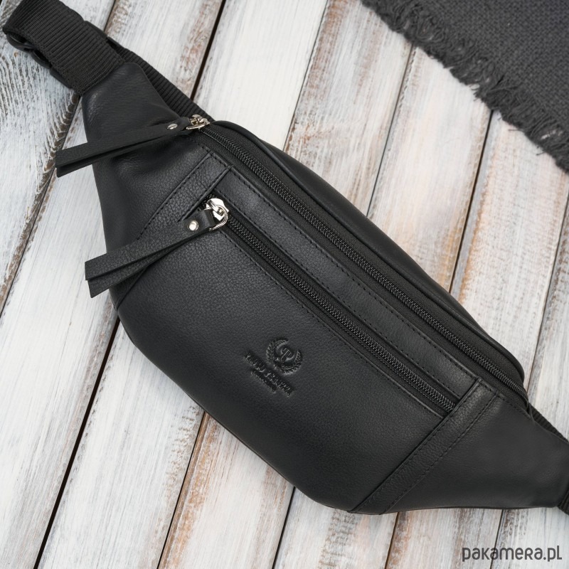 Saszetka skórzana na pas AY-28-BL – klasyka, funkcjonalność i bezpieczeństwo w jednym